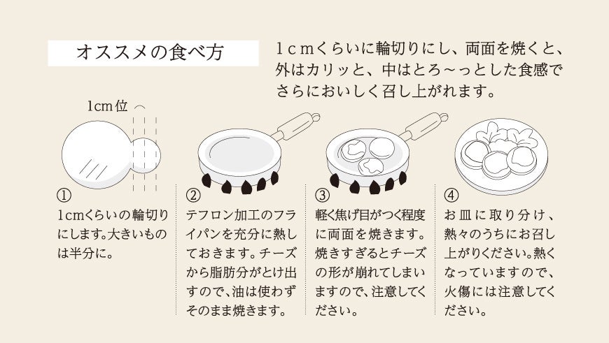 食べるシーンを想定し、優しい塩味になるよう塩加減を調整したカチョカバロチーズ。職人が1つ1つ丁寧に思いを込めて手作りしたチーズは、やや硬めに仕上げており、食べ方・シーンを問わずお召し上がりいただけます。