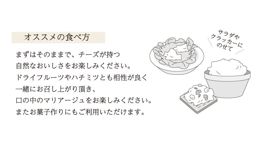 大山乳業がつくるクリームチーズの最大の特徴は、色と食感。鳥取県産の牛乳を使って出来上がる真っ白なクリームチーズはやわらかくなめらかで、そのまま口に入れると後味の良い酸味が口の中を満たします。鳥取県産の牛乳とクリームの自然な風味がベースとなった、なめらかですっきりとした爽やかな味わいをご堪能下さい。