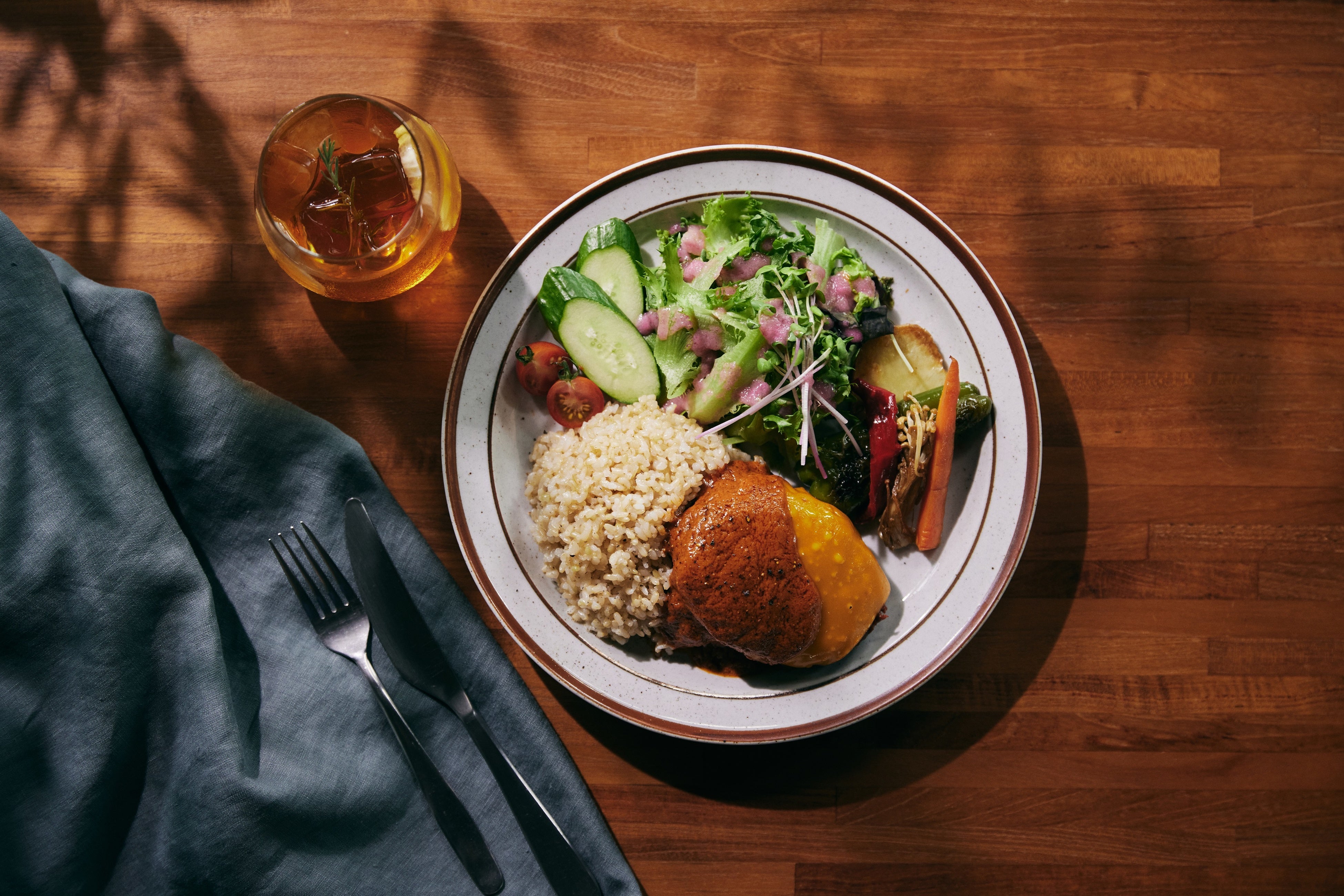 ハンバーグやパスタ、カレー等がメインの満足感たっぷりの日替わりランチプレート。PLANT BASEDだからこそ、罪悪感や胃もたれを感じずに空腹を満たすことができる一皿です。提供時間:11:00~15:00