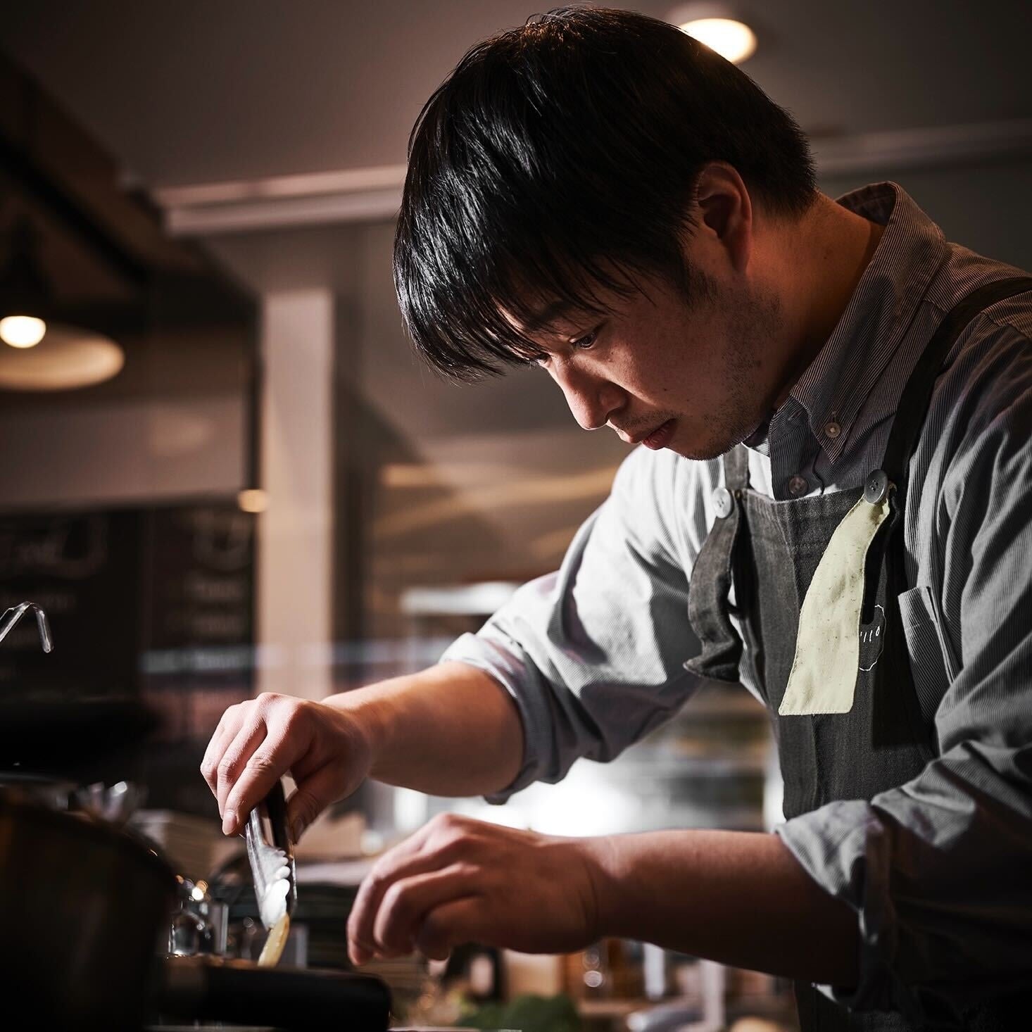 ウエスティン東京、ザ・ペニンシュラ東京を経て、料理家の栗原はるみ氏のスタッフとして活躍。藤沢にある自然食レストラン「ecomo」の店長を経て、当店のシェフとしてプラントベースメニューの開発を手掛ける。