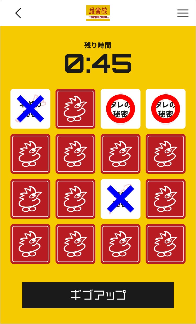 カードは全部で16枚、制限時間1分以内にすべてクリアできた方の中から抽選で200名様に「鳥貴族オリジナルグッズ」をプレゼントいたします。