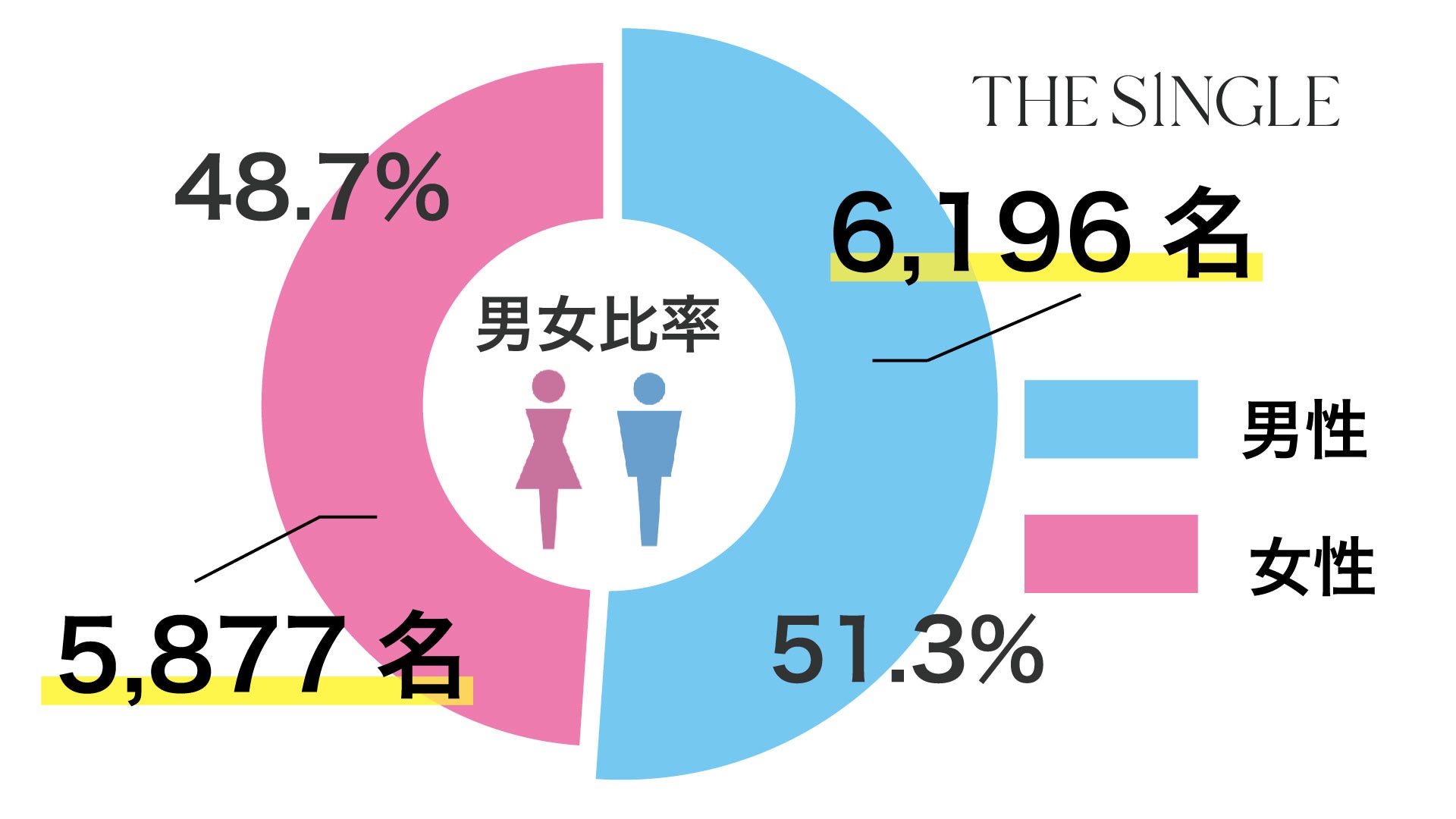 2022年7月のTHE SINGLEへの男性来店数6,196人、女性来店数5,877人を突破。男性51.3%、女性48.7%と来店数の男女比は男女共にほぼ変わらない結果となりました。