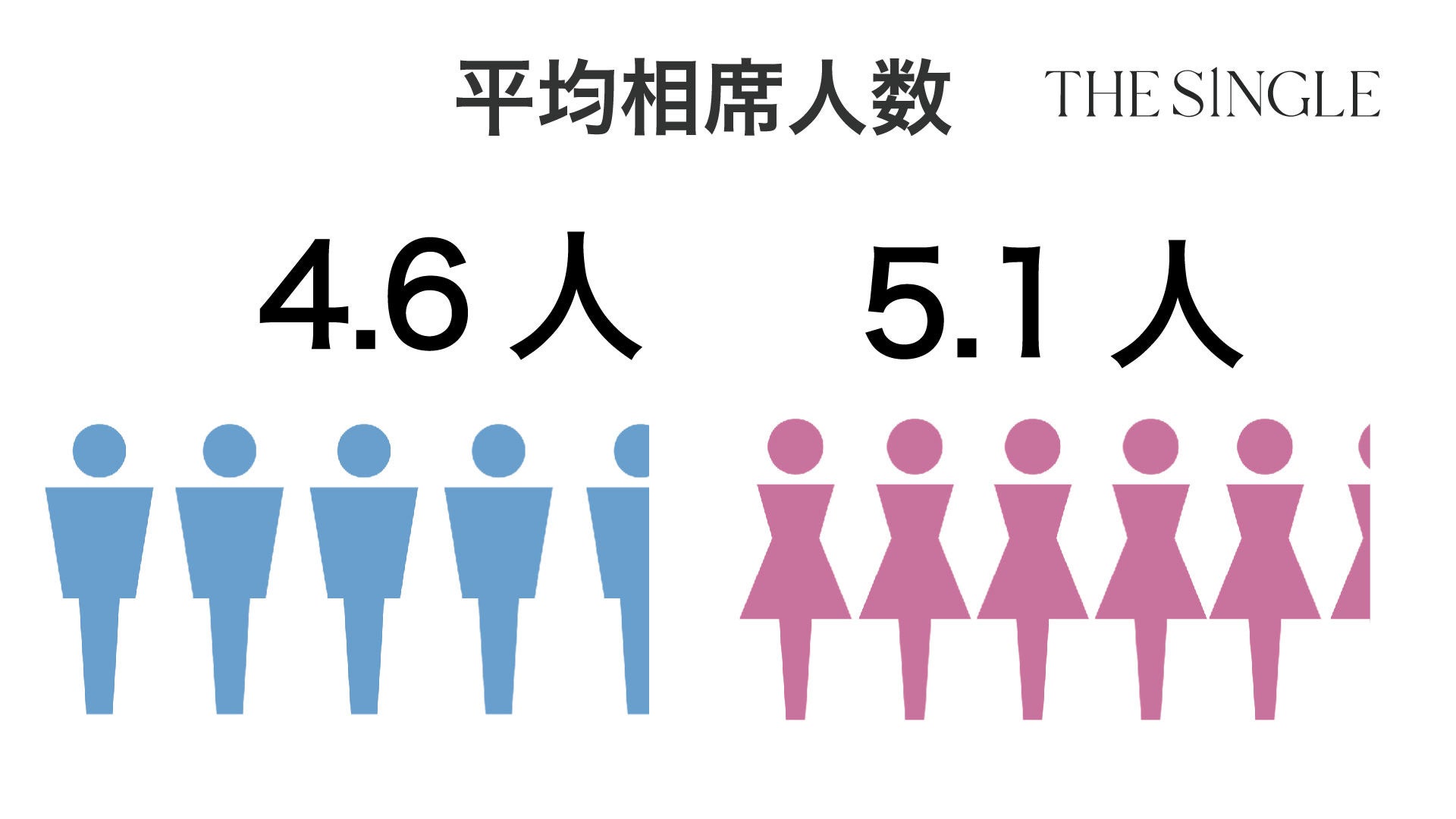 2022年7月のTHE SINGLEの平均相席人数は男性は4.6人、女性は5.1人となりました。
