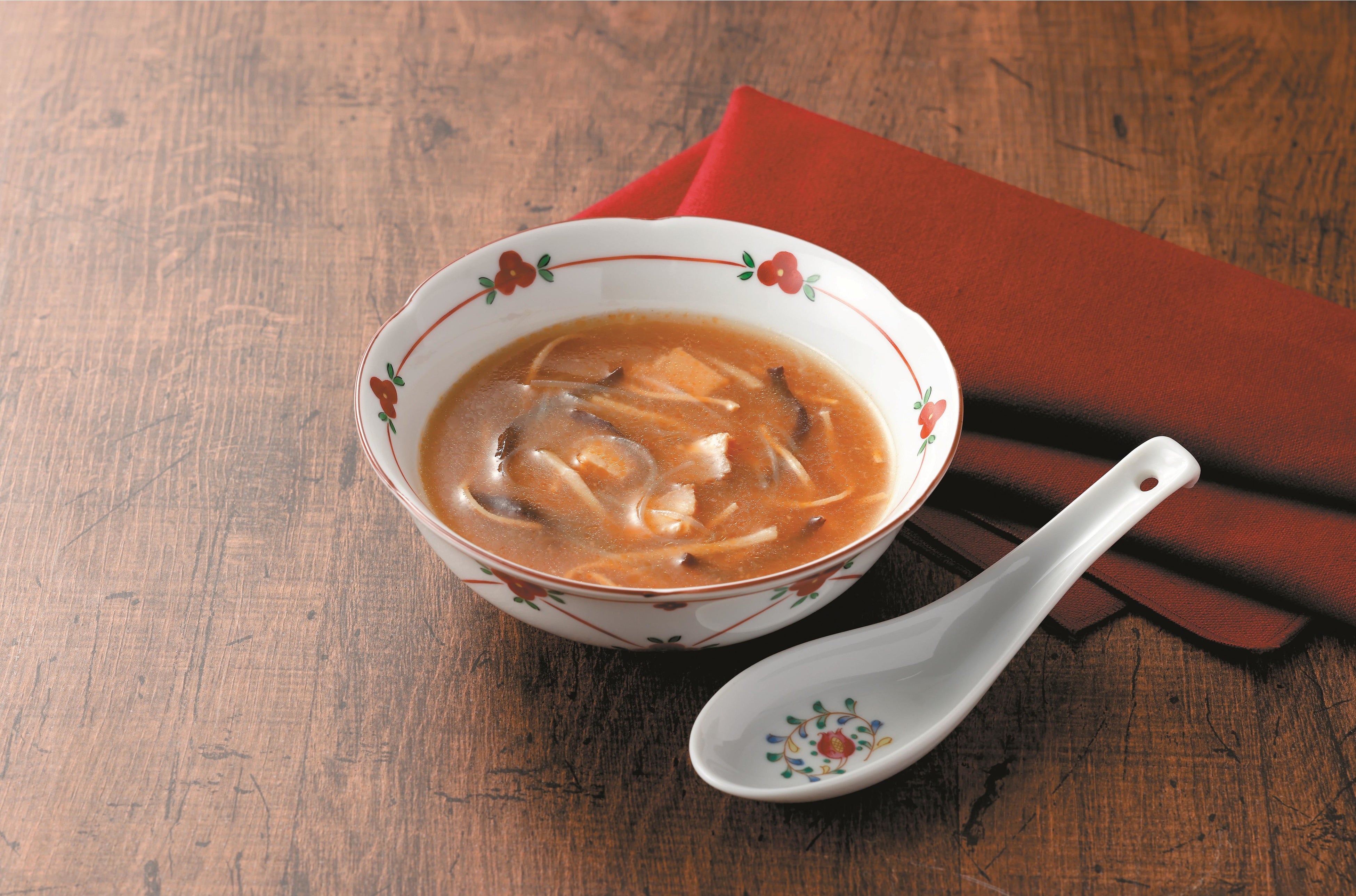 暑い夏場に辛味と酸味の爽やかな刺激を与える”酸辣湯”をお楽しみください。