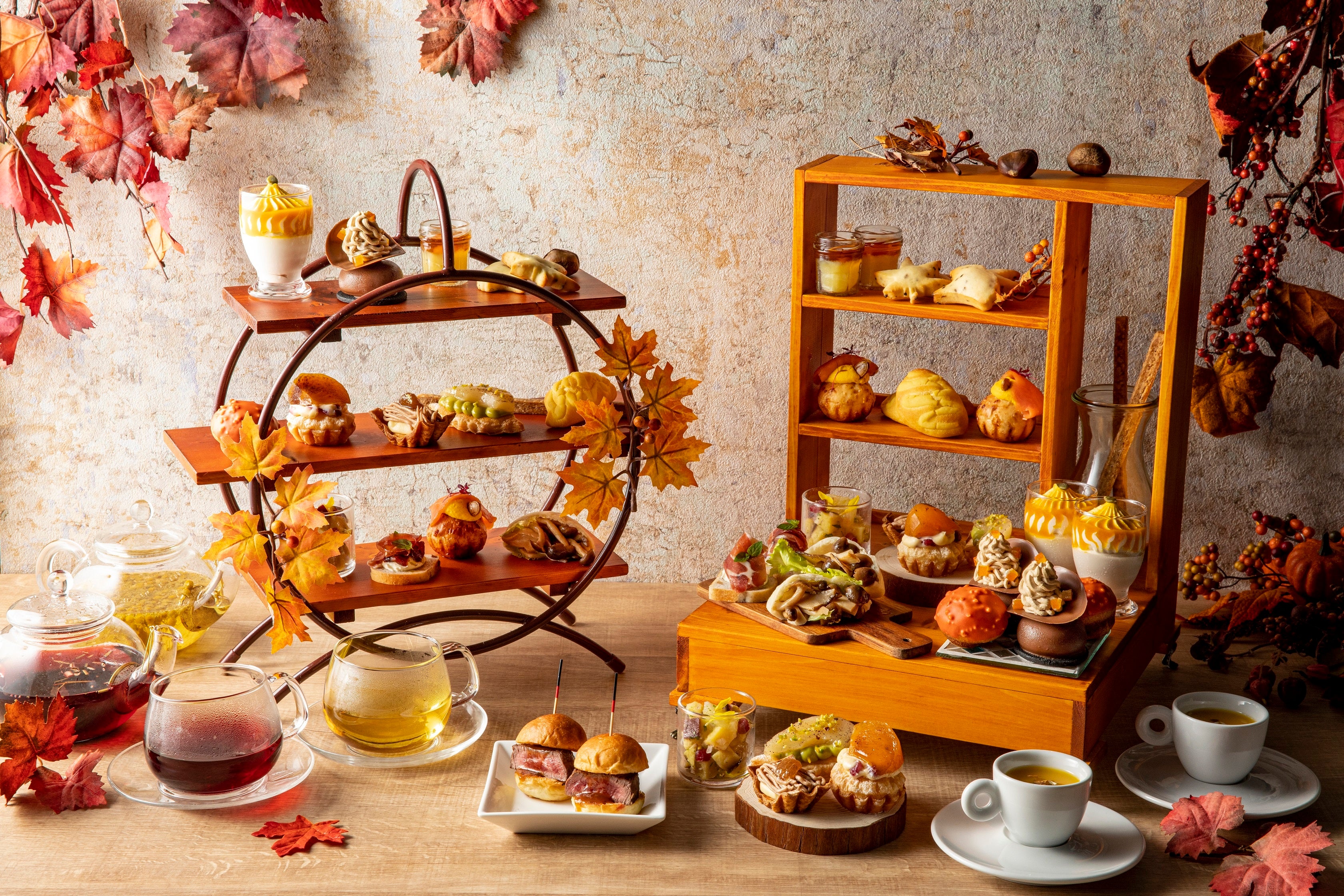 その他にも「ビーフステーキバーガー トリュフソース」や「パンプキンクリーミースープ」、本日のサラダに加え、「マーブルラウンジ」より2種類のスイーツ、天津甘栗もセットになっており、ランチやアフタヌーンティーとしてはもちろん、少し早めのディナーとしてもご満足いただける内容となっております。
