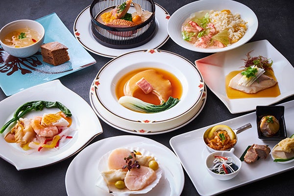 素材を生かしたあっさりとした味付けでどなたにもお召し上がりいただきやすく仕上げた全8品のコース料理です。コースのはじまりは“広東焼き物入り 前菜五種盛り合わせ”。なかでも広東叉焼は必見で、塩漬けした豚肩ロース肉をタレに漬け込んだあと、はちみつや水あめを使ったオリジナルのタレで焼き上げた料理長自慢の手間暇かけた肉の旨味と甘さが際立つ一品。目にも美しいふかひれが浮かんだ“金華ハムのスープで煮込む ふかひれ姿煮”は世界三大ハムの一つである金華ハムのあっさりとしたなかにもコクが広がる満足感のある仕上がりです。そのほか魚介をふんだんに使用した至福の料理を心ゆくまでご堪能ください。