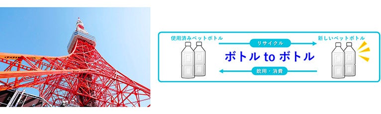 東京タワーで回収した使用済みペットボトルを、当社の飲料用ペットボトル容器として再生・使用することで、「ボトルtoボトル」水平リサイクルを実現します。今回の取り組みにあたり、東京タワーと協働し、新しくデザインしたリサイクルボックスを設置し、パネルなどを用いて来場者の方々にペットボトルの分別投入の啓発を実施します。また、今後も協働で啓発活動を実施する予定です。東京の代表的な観光スポット「東京タワー」でのこれらの活動を通し、ペットボトルは何度も循環する資源であることをお伝えしていきます。