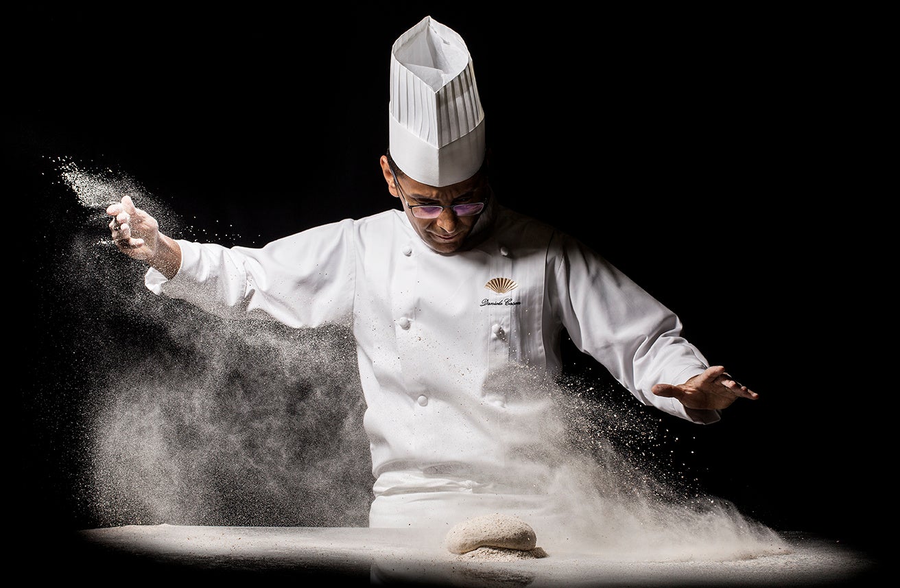 「ピッツァバー on 38th」は、シェフズテーブルをイタリア風にアレンジした、8人席のみの大理石天板のバーカウンターにて、ピッツァ職人、ピッツァイオーロがお客さまの目の前の窯で焼き上げた、熱々のピッツァをご堪能いただけるレストランです。ピッツァはトラディショナルなセレクションのほか、旬の食材を使用した季節のピッツァやデザートピッツァ等もご用意しております。イタリア・ローマ出身の総料理長 ダニエレ カーソンがこだわるピッツァ生地は、トマトとの相性が抜群で軽やかな口当たりが特徴の「レジェーロ」と、チーズの旨味を引き立たせる風味豊かな「サポリート」の2種をご用意し、イタリア産オーガニック小麦を用い、総重量に対して80%の割合でたっぷりと水を含ませた生地に1%のイーストを加え、48時間かけて熟成させ、非常にきめ細やかな作業を要して創り上げます。