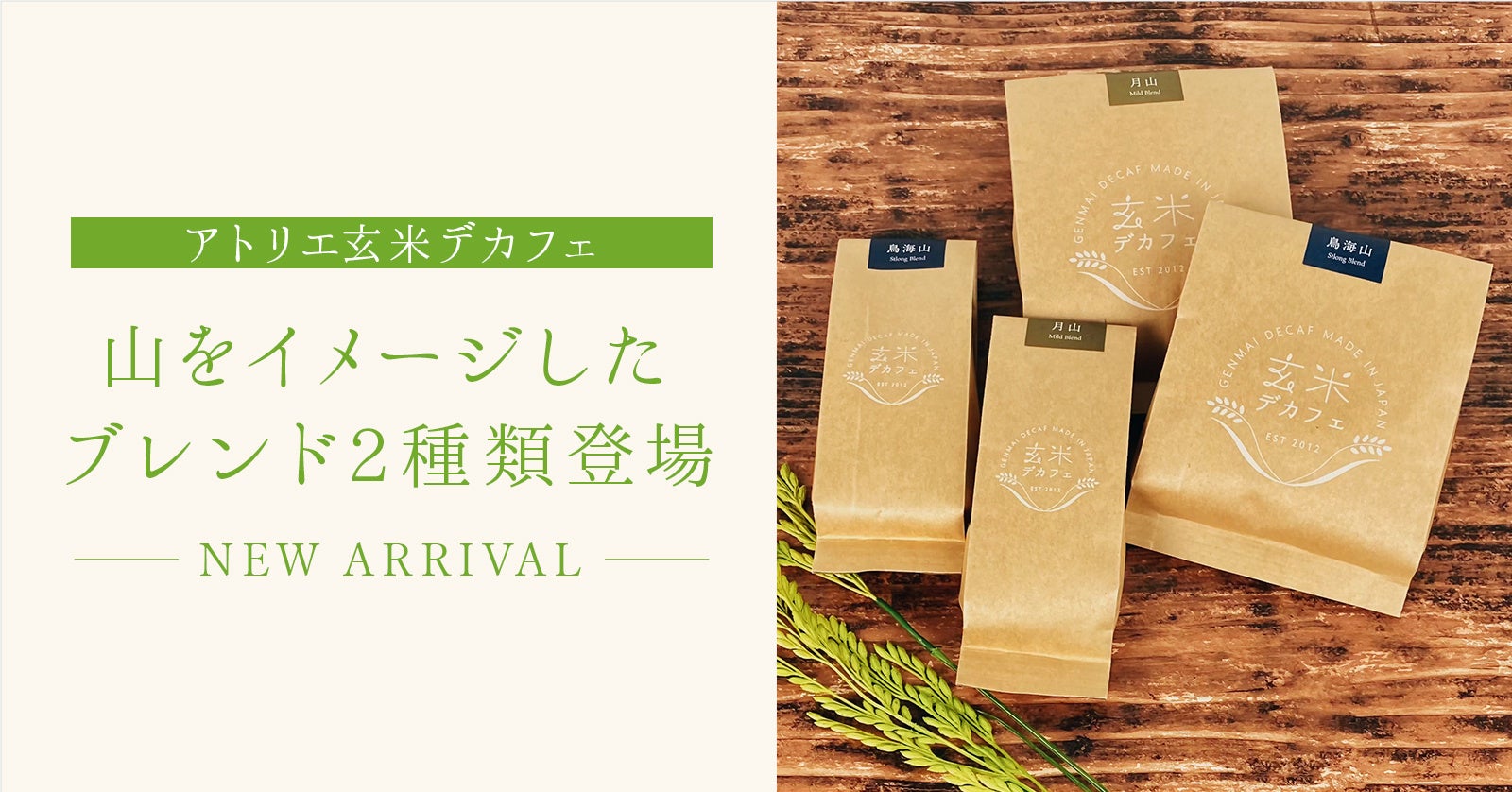 山形県に実在する山をイメージした新しい玄米デカフェブレンド、「月山」「鳥海山」ができました。