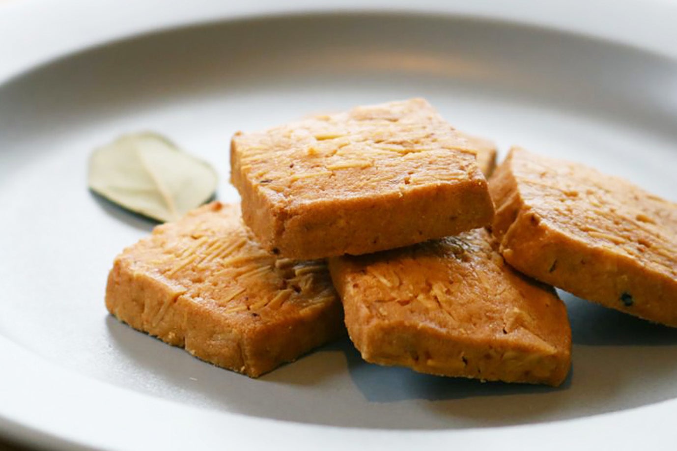 シナモン風味のアーモンドクッキーに七味唐辛子を練りこみました。甘さの後にぴりりと辛みが感じられます。七味と言えども激辛なお菓子ではなく、甘みと辛みの上品なバランスを楽しめるクッキーです。お手土産などにお使い頂くことが多いですが、中にはご自分用としてお買い上げされる熱烈な七味クッキーファンの方もいらっしゃいます。