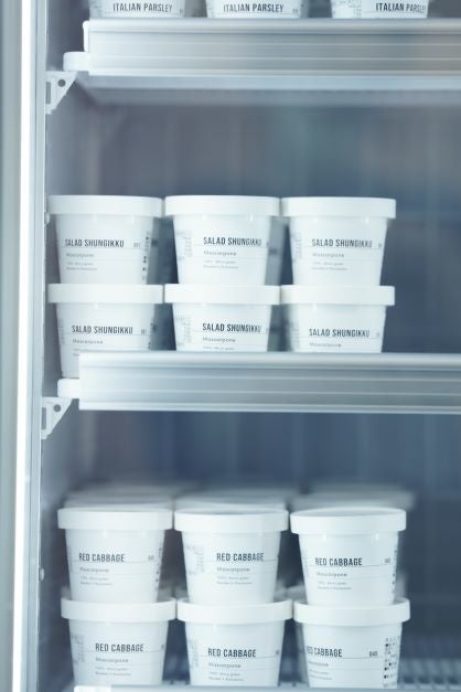 また、ご自宅でもOTMアイスをお楽しみいただるよう、カップアイスをご用意。こちらはアイスの種類が5種類と、それぞれに合ったマイクログリーンとの組み合わせになっています。現在、EC販売も準備中。