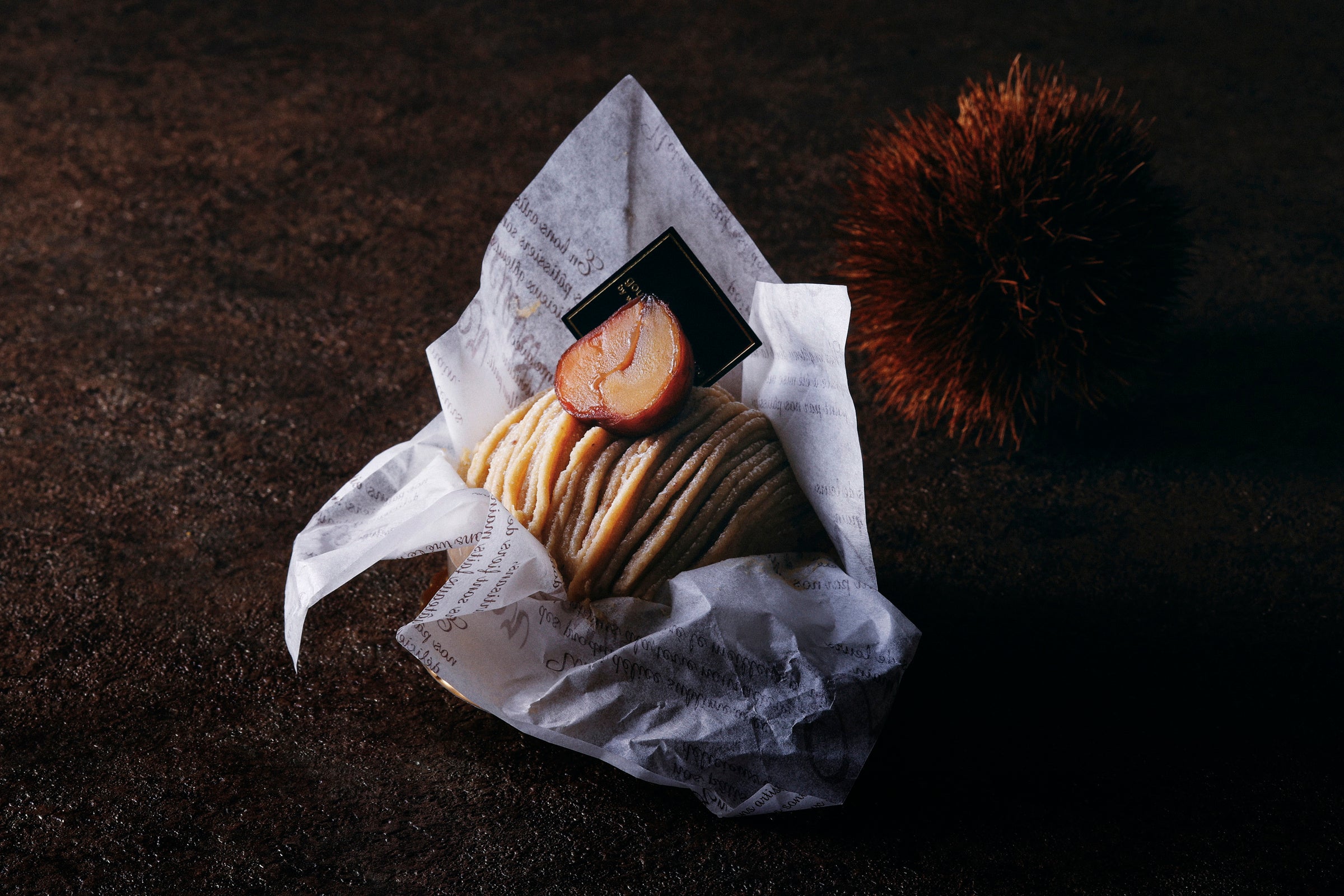 今年は、りんごにフロマージュブラン、ピスタチオ、ヘーゼルナッツ、チョコレート、そしてシュー生地とクレームディプロマットなど、さまざまな素材を組み合わせながら、異なる魅力をまとったモンブランへと昇華させました。栗が持つ奥深い味をお楽しみいただけるよう、合わせるクリームや栗の使い方を素材に合わせて変化させ、それぞれ外観も味わいも表情豊かに仕上げています。