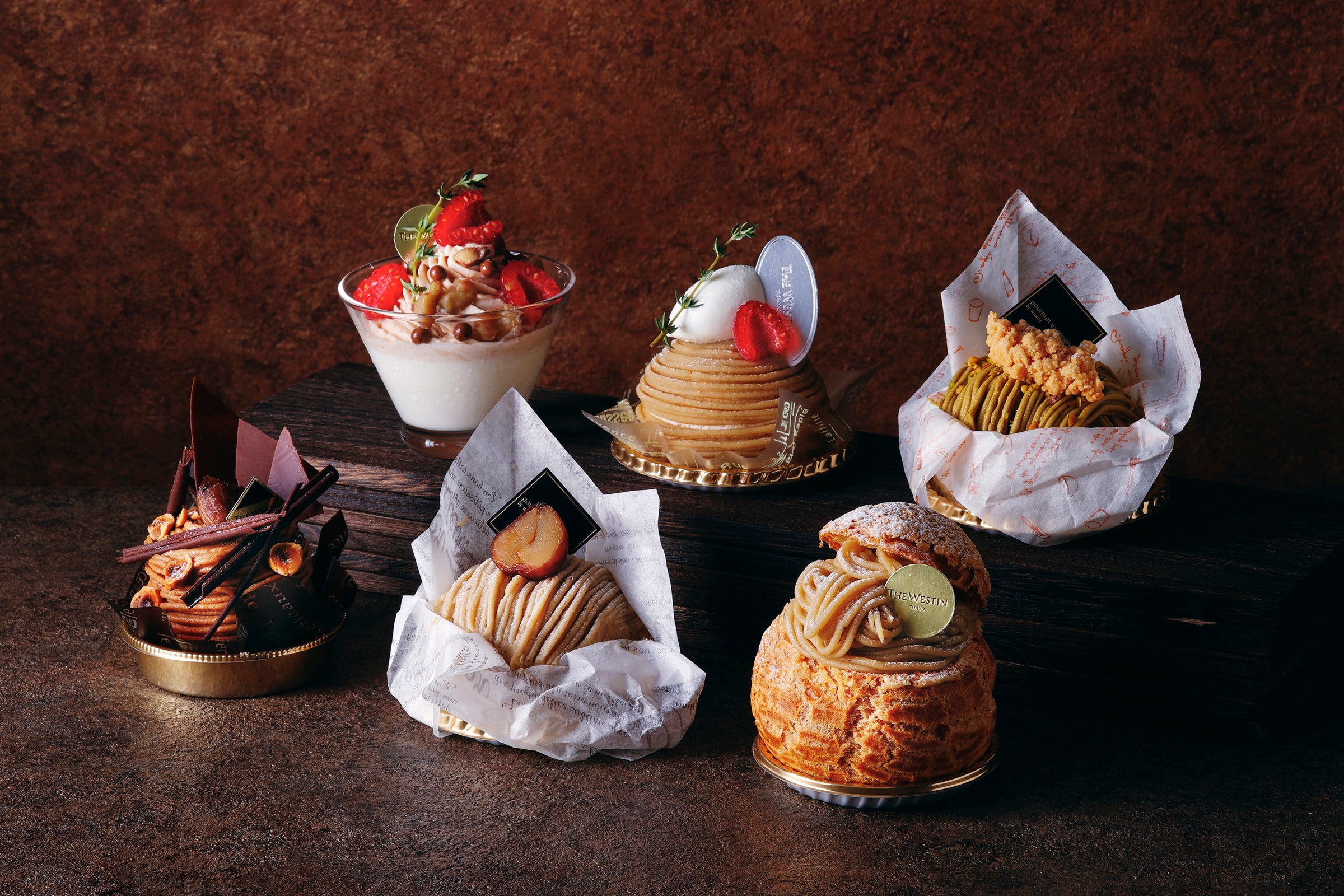 ショーケースに並ぶケーキをはじめ、一つひとつ丁寧に仕上げたペストリーやベーカリー、ギフトアイテムを揃えたペストリー ブティック「ウェスティン デリ」では、栗が旬を迎える季節に合わせて9月から11月までの期間、通年販売している『スペシャルモンブラン』に5つの秋限定モンブランを加え、合計6種類のモンブランを揃えて販売いたします。