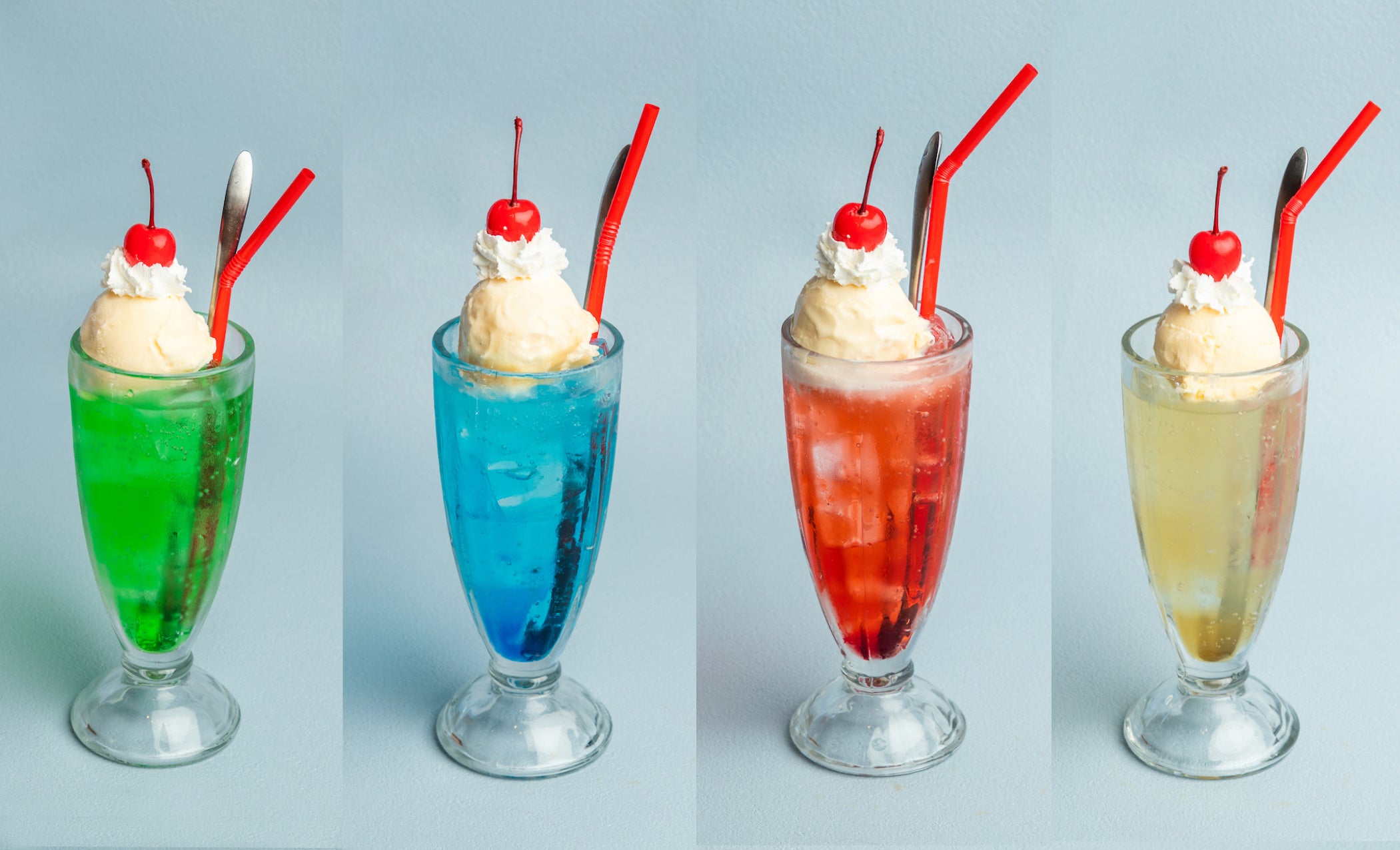 クリームソーダは、定番のメロンソーダやコーラフロート、ブルーレモネードなどカラフルな7つのフレーバーをご用意しました。
