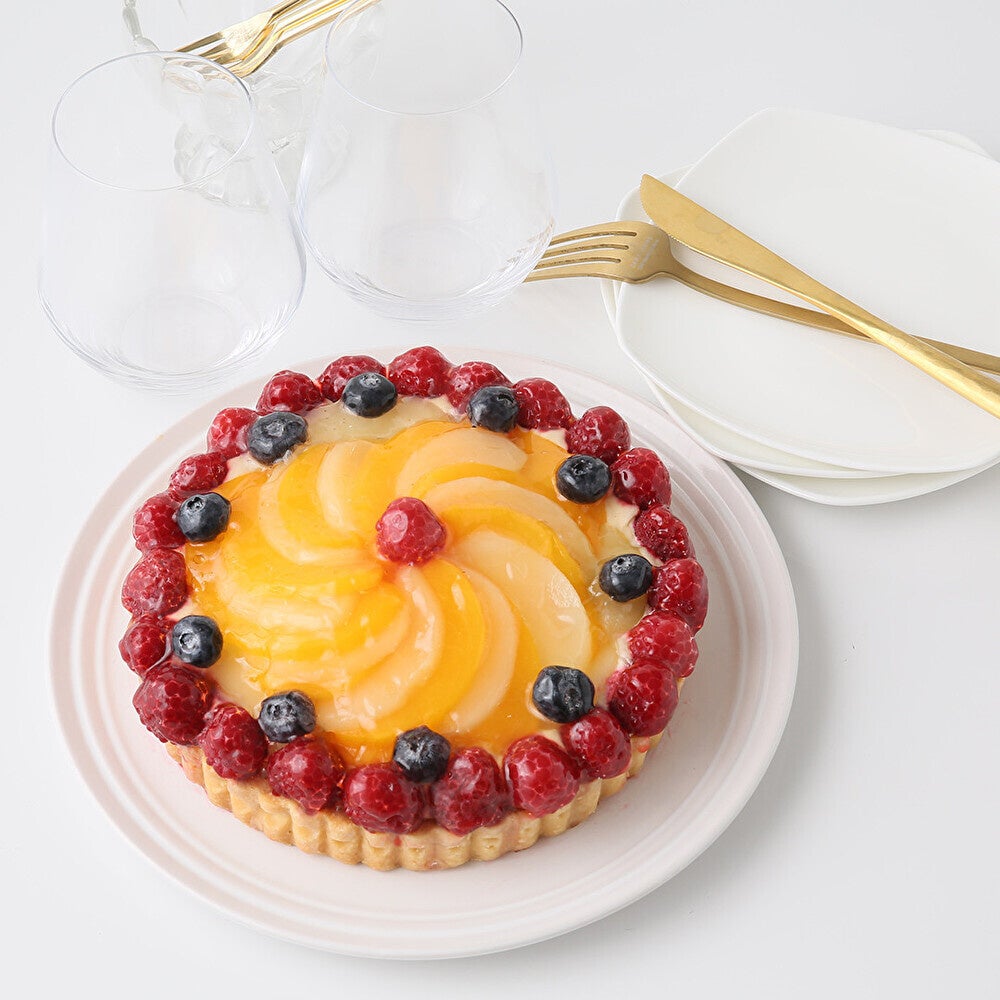 なめらかなカスタードホイップクリームとアーモンドクリームのタルトに、フルーツをたっぷりデコレーションした逸品です。