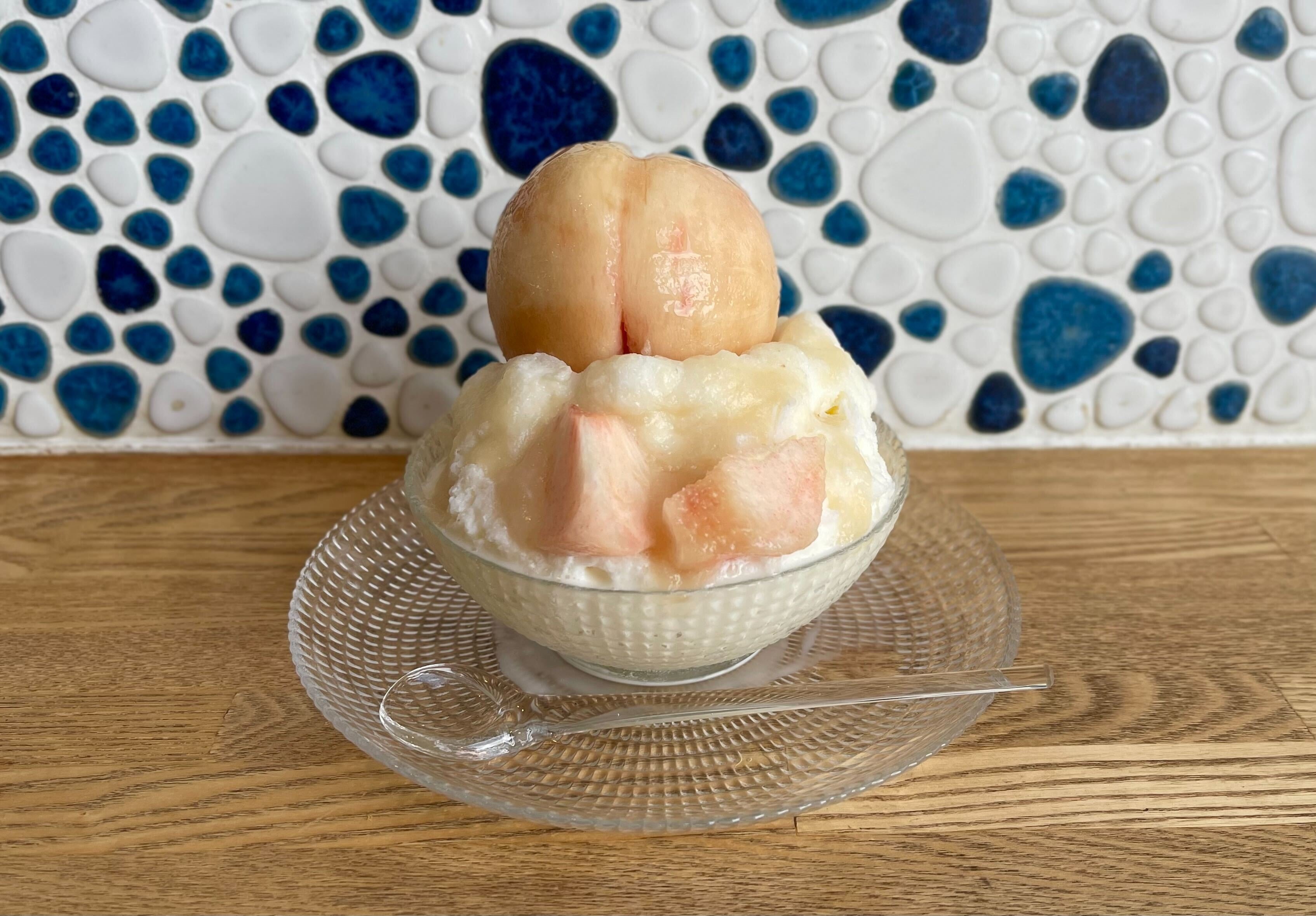 桃をたっぷり贅沢に楽しめるかき氷です。