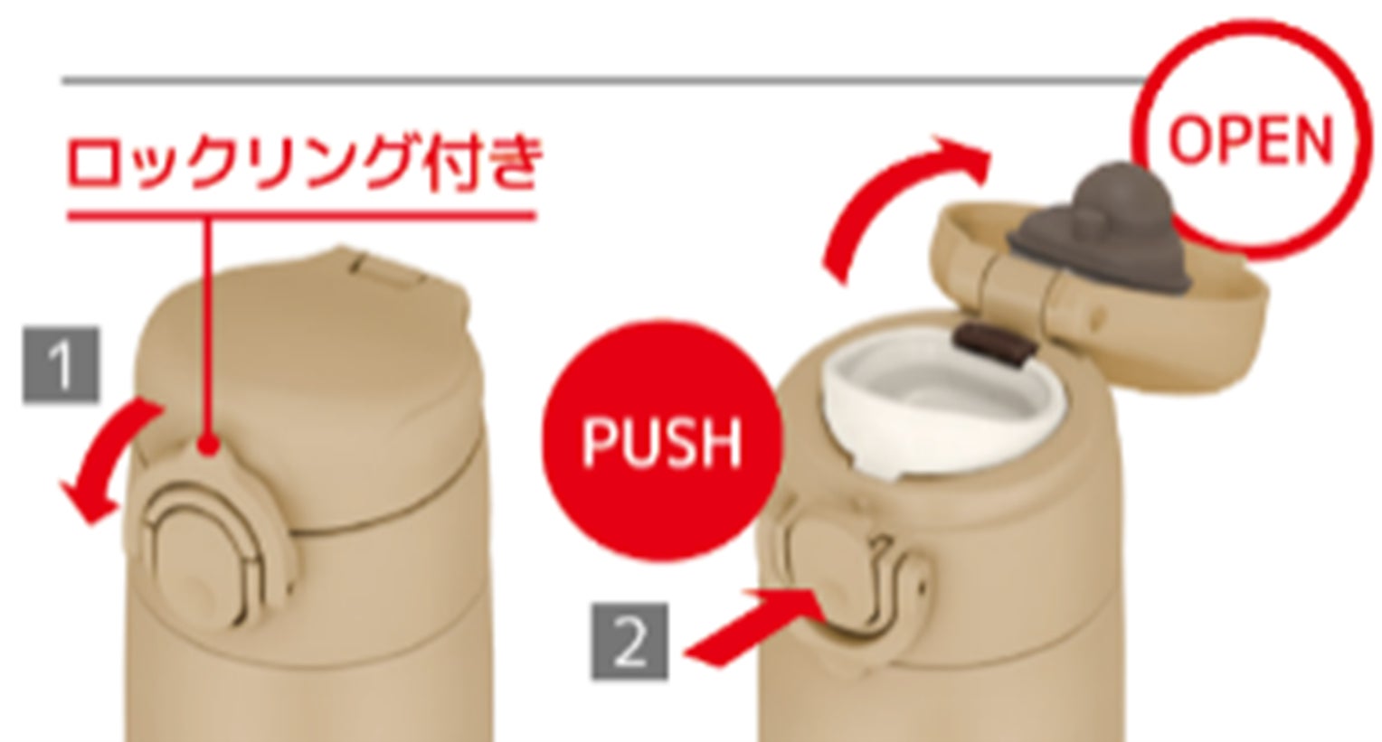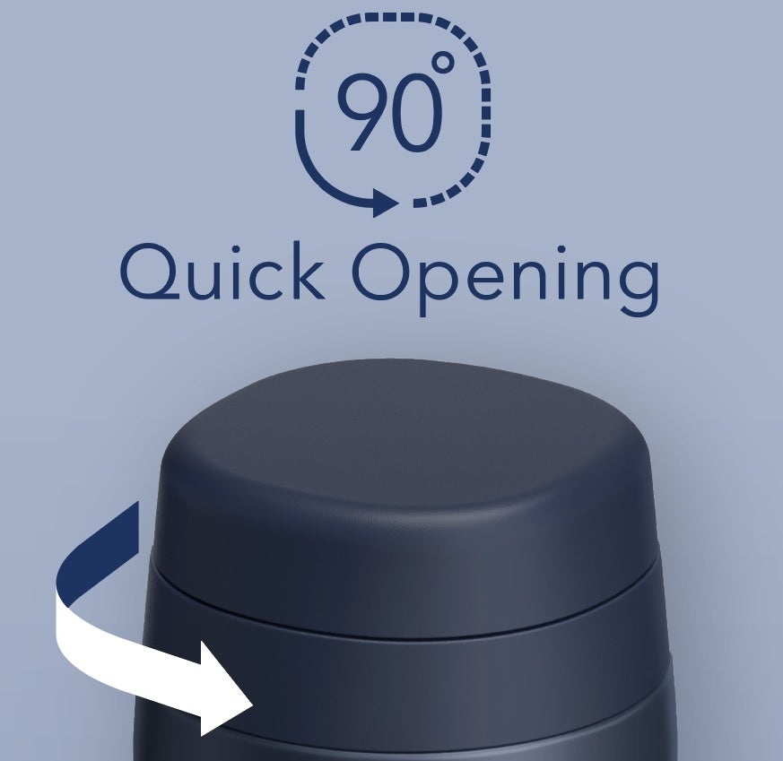 サーモスでは、160度オープンのフタを採用した製品を2013年から発売し、手軽に開けられることから多くのお客様にご好評いただいております。また、「フタを多く回して開けるのが面倒」という方が一定数いらっしゃることから、このたび、より回転数を少なくした90度回転で開くフタの製品を開発しました。 “簡単に開けられる=簡単に開いてしまう”とならないよう、安全性に十分配慮しながらデザインや構造を検討しています。樹脂製の飲み口は形状面にもこだわり、口当たりの優しい飲み口に仕上げました。