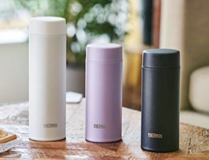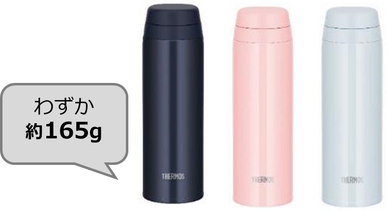 使いやすさにもこだわり、ステンレス製魔法びん構造の高い保温・保冷力で飲み頃温度をキープします。飲み口は樹脂製でやさしい口当たりです。最も大きい0.5Lサイズで重量約205gの軽量設計で持ち運びもラクラク。構造面だけではなく見た目のシンプルさにもこだわった3サイズを展開、0.25Lは2色、0.35Lと0.5Lは3色のカラーを用意しています。