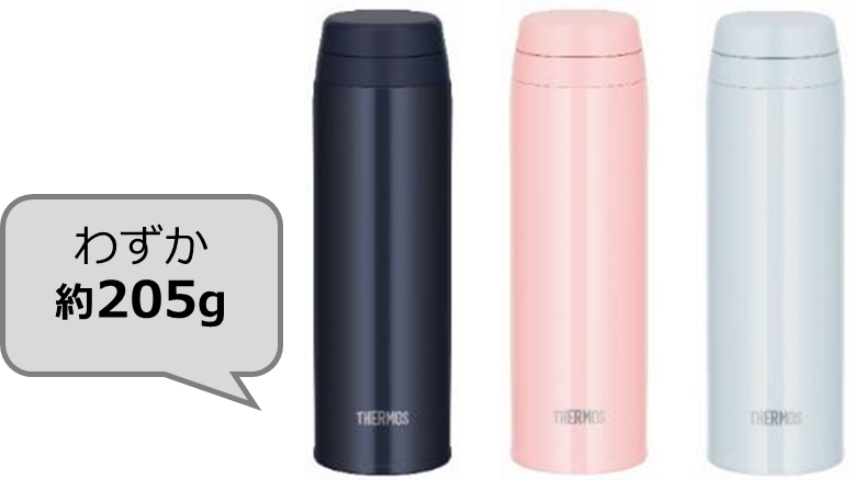 使いやすさにもこだわり、ステンレス製魔法びん構造の高い保温・保冷力で飲み頃温度をキープします。飲み口は樹脂製でやさしい口当たりです。最も大きい0.5Lサイズで重量約205gの軽量設計で持ち運びもラクラク。構造面だけではなく見た目のシンプルさにもこだわった3サイズを展開、0.25Lは2色、0.35Lと0.5Lは3色のカラーを用意しています。