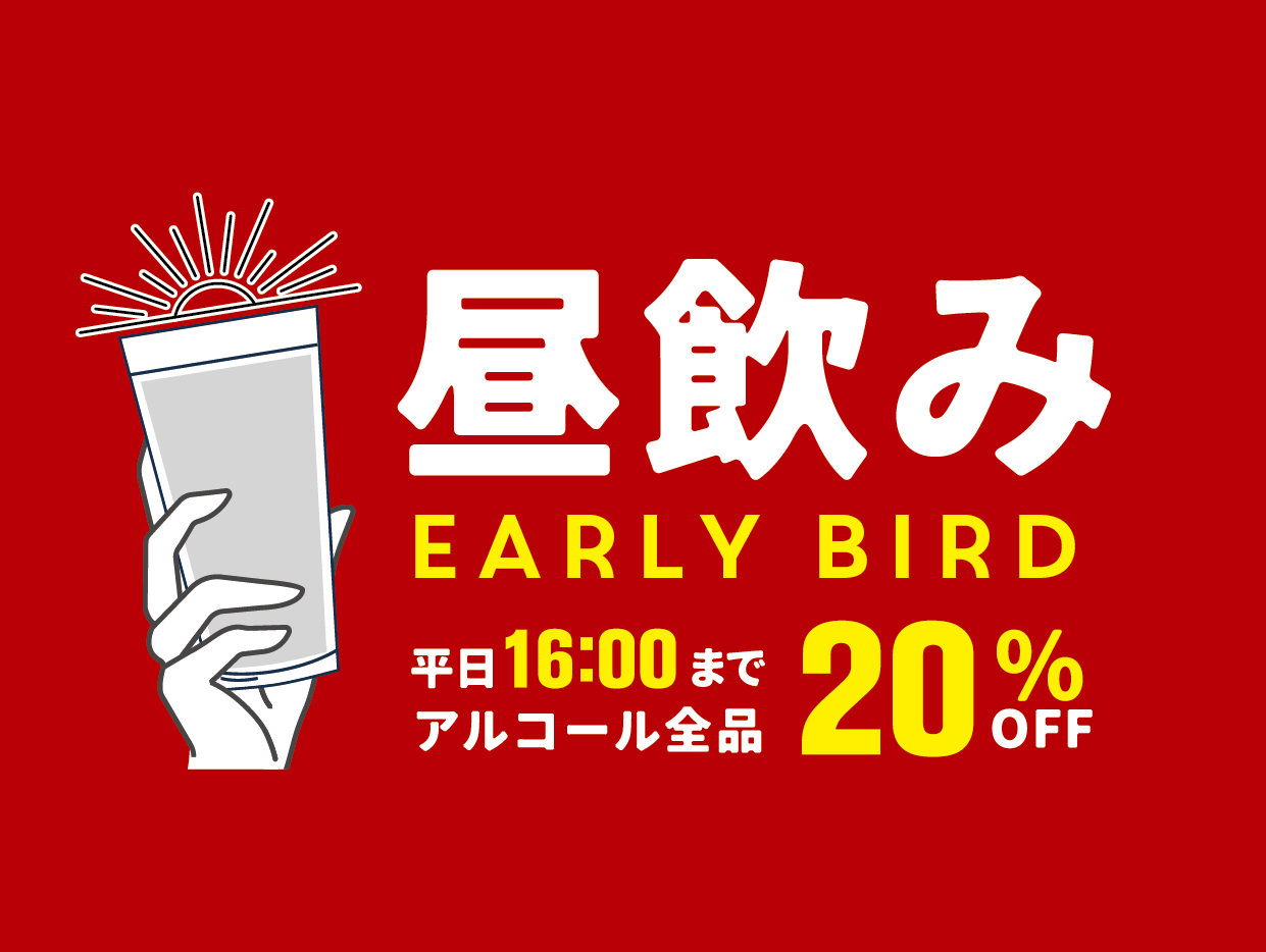 - 「昼飲み EARLY BIRD」スタートにあわせて、ドリンクメニューをリニューアル!
