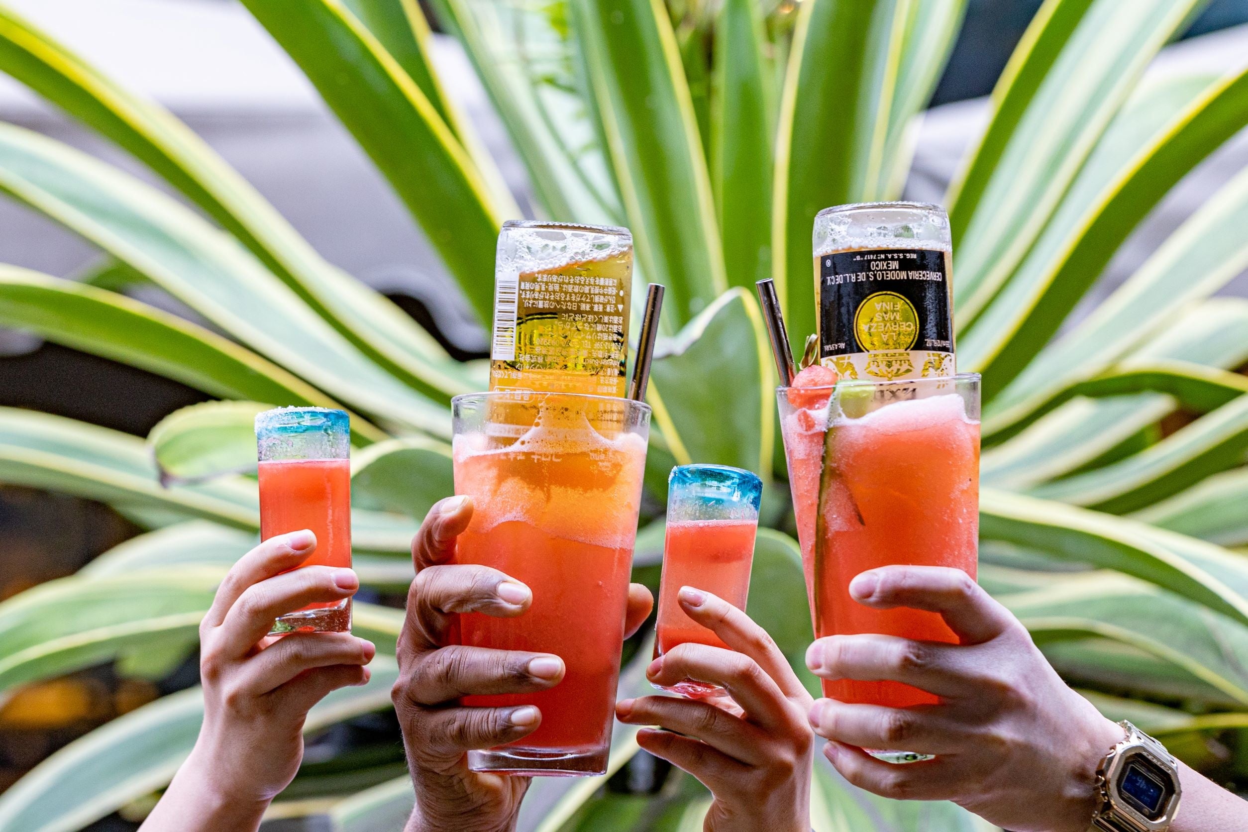 HUGEがこだわるのは、単純な値引きではないということ。レストランだからこそ楽しめるフレッシュフルーツをたっぷりと使ったシズル感があり、目にも楽しいカクテル。フルーツやハーブ類は社内の青果バイヤーが目利きし買い付けてきた、自信をもってお勧めする品々。それを各レストランのバーテンダーが工夫を凝らし、そのお店だけのオリジナルカクテルとして完成させました。