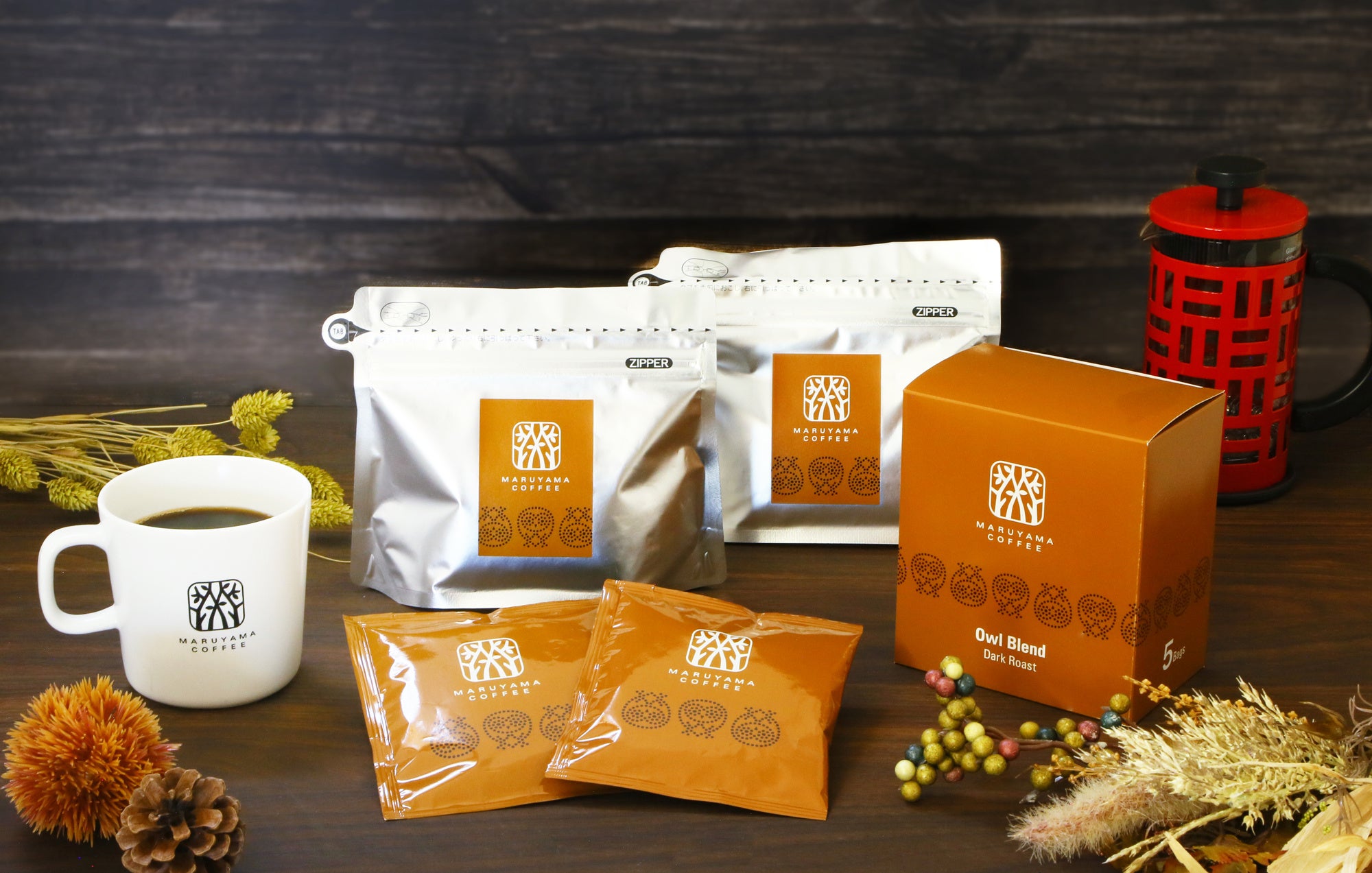 ハロウィンシーズンに大人気のハロウィンブレンドは、ジャック・オ・ランタンをアイキャッチに用いたカラフルな特別仕様のパッケージでご用意。今年のハロウィンシーズンを盛り上げます。また、丸山珈琲の秋の風物詩である「ふくろうブレンド」は誕生から10年を迎え、長年愛されるコーヒーの定番となりました。今年は「ふくろうブレンド」や秋の味覚を堪能できる商品をギフトにしてお届けします。