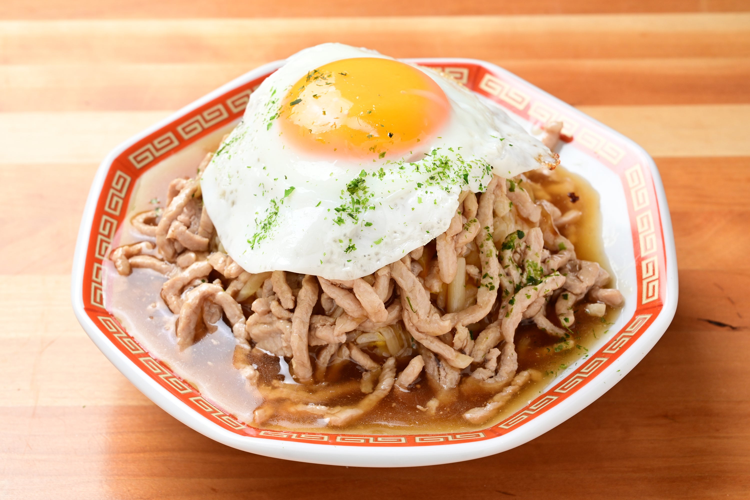 豚肉の細切りとタケノコをふんだんに使い濃厚な中華あんと合わせ、チャーハンにぶっかけたキングオブチャーハン!!味のアクセトで仕上げに青のりをかけ、香ばしいパラパラチャーハンと濃厚なあんがベストマッチ!