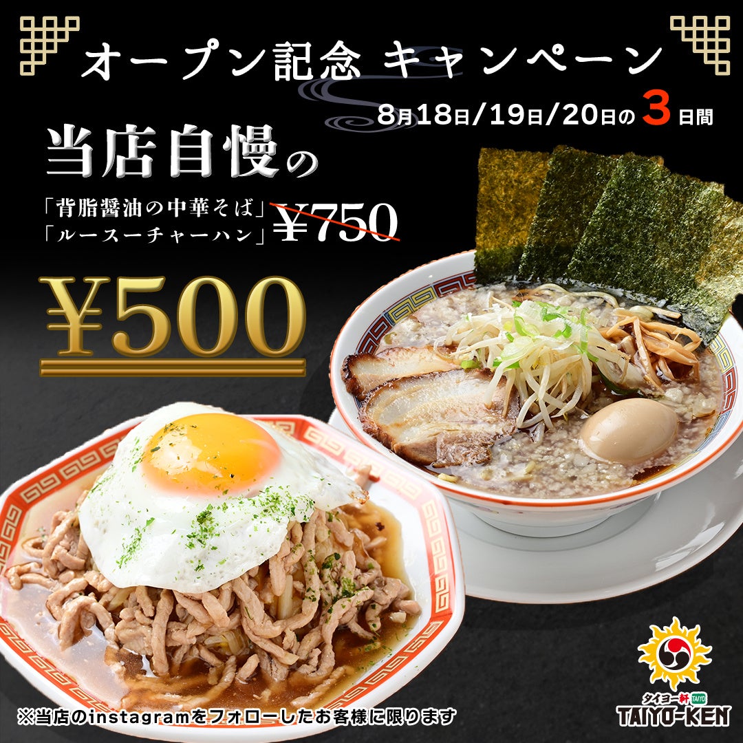8/18(木)〜8/20(土)の3日間、当店自慢の2商品を500円で提供するワンコインキャンペーンを実施いたします。