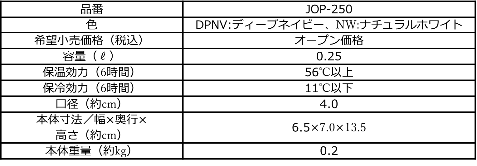 『サーモス 真空断熱ケータイマグ(JOP-250)』仕様一覧