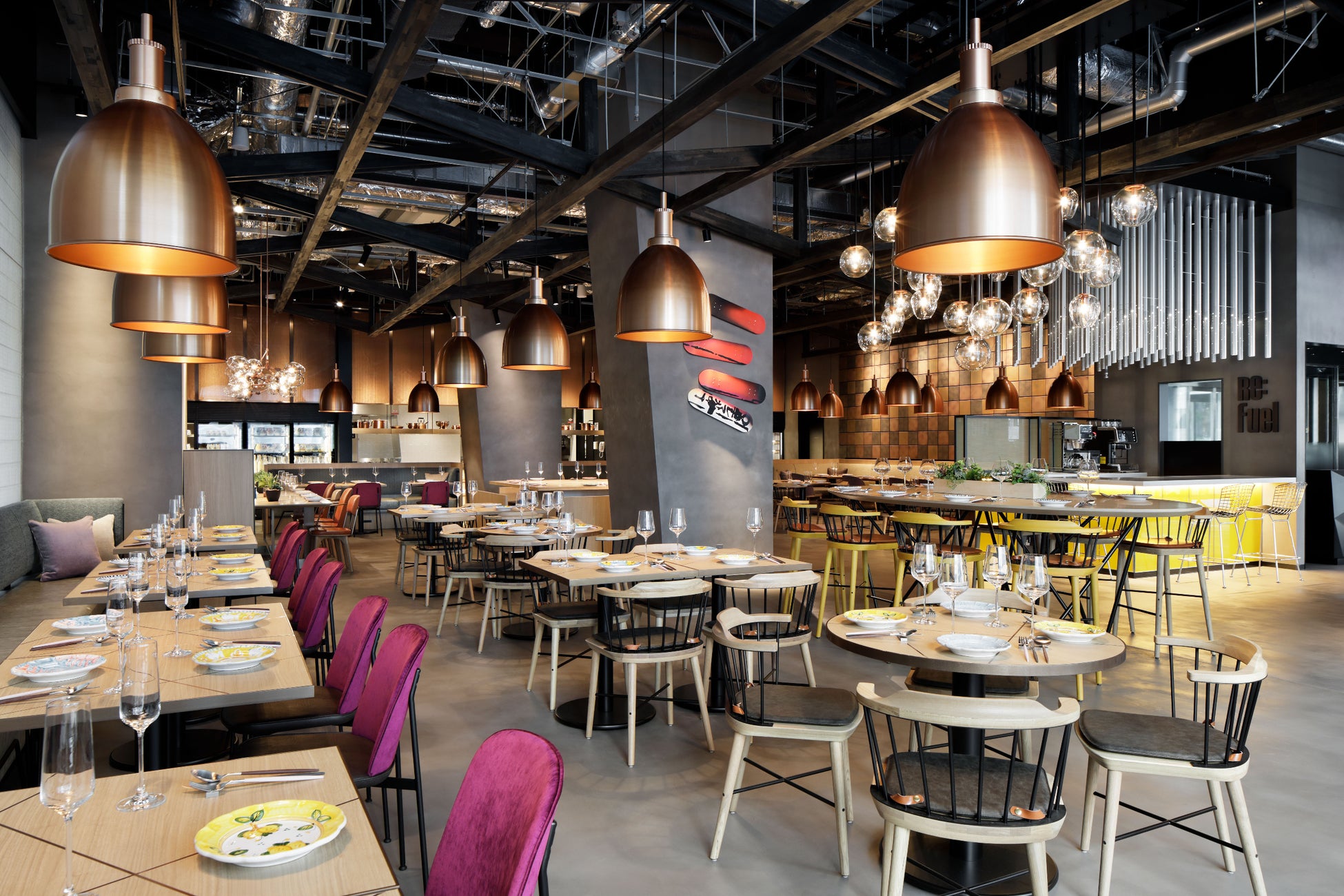 季節のフルーツやシリアルなどが並ぶ“シグネチャー・シリアル・バー”はじめ、一日のスタートにぴったりな充実の朝食、栄養やスタミナをテーマにした国際色豊かな日替わりランチ、そして一日の終わりには自分へのご褒美に、おすすめのワインとそれによく合うお料理を。宿泊ゲストだけでなく、地元の方々もお楽しみいただけるコンテンポラリーで遊び心あるデザイン&レイアウトが魅力のオールデイダイニング。イタリア製のカラフルなテーブルウェアなど、フォトジェニックな場所を探してみるのもおすすめです。