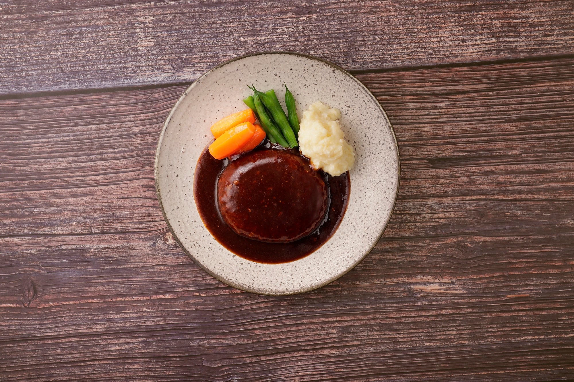 オーブンで焼き上げたハンバーグをロイヤル自慢のドミグラスソースと合わせました。