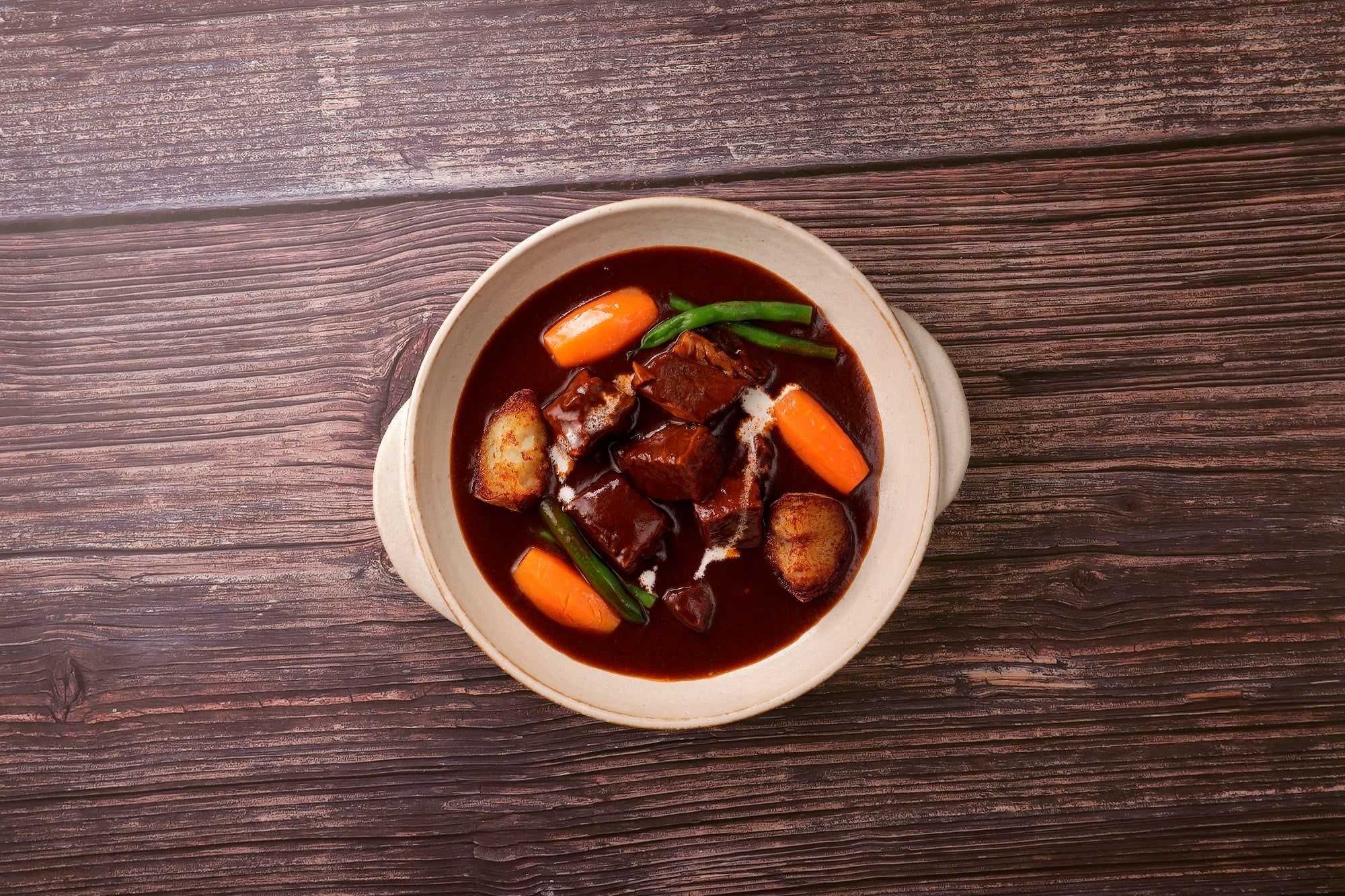 牛バラ肉を赤ワインやブイヨンで柔らかく煮込みました。パスタ等とご一緒にお楽しみください。