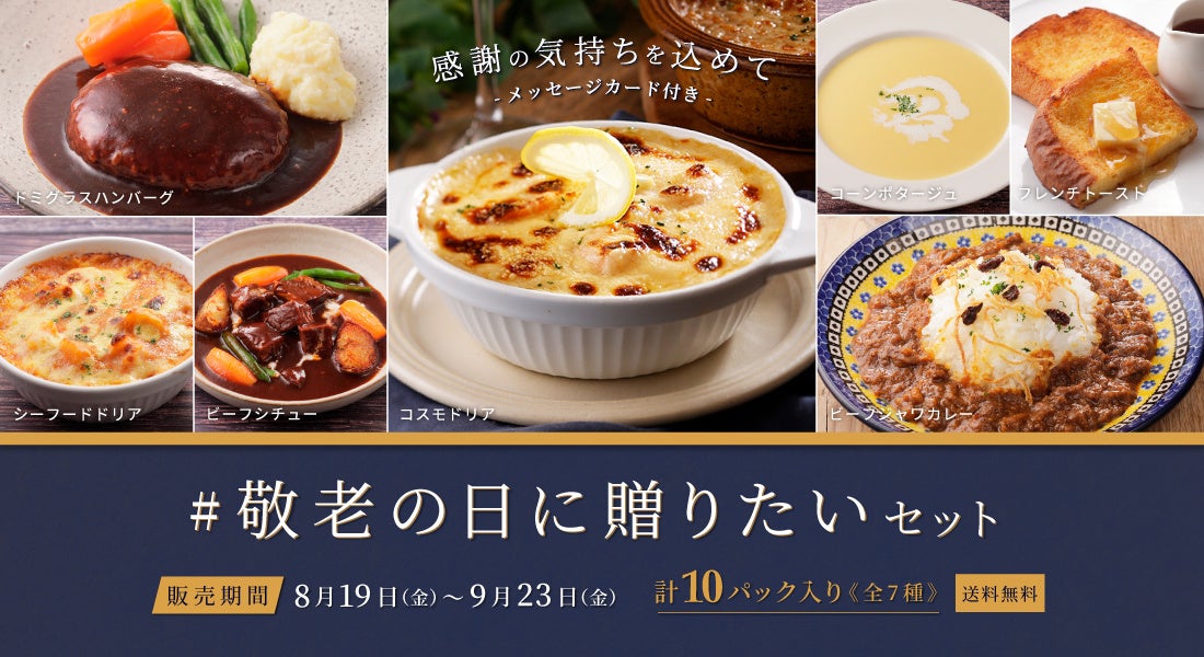今回ECサイト限定で販売する「#敬老の日に贈りたいセット」は、“日頃の感謝を込めて、ごちそう洋食を楽しんでもらいたい”がコンセプト。人気商品の「ドミグラスハンバーグ」や「ビーフジャワカレー」、電子レンジ対応商品の「コスモドリア」など、温めるだけで簡単にできあがるメニュー7種10パックをセットで販売します。また、今年はロイヤルデリのオリジナルメッセージカードをご用意しました。今年のオリジナルメッセージカードはご自身で150字程度のメッセージを入力できる仕組みにしております。コロナ禍で気軽に会うことが難しい今だからこそ、大切な人に伝えたい想いをメッセージカードとともにお届けします。