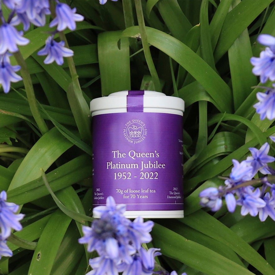 エリザベス女王のプラチナ・ジュビリーを記念した紅茶。手摘みの茶葉に、ジャスミンと薔薇の花びら・青いコーンフラワーのブレンド。