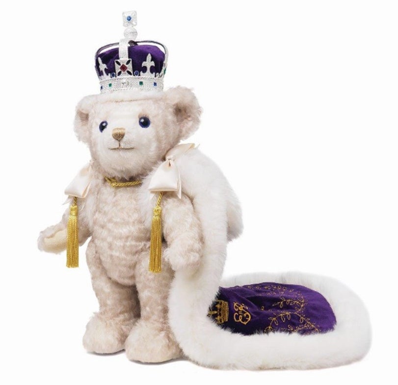 1953年の戴冠式で着用した王冠とローブを忠実に再現したプラチナジュビリーを記念したベア。