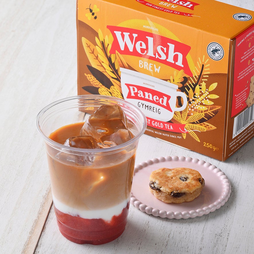 アイスティー用にしっかりと抽出し、苺ピューレとたっぷりの牛乳を加えました。「苺ミルク好き」に贈るフルーティーでスッキリとしたアレンジティーです。英国菓子研究家、砂古玉緒氏が〈ウェルシュ・ブリュー〉に合わせて作ったミックススパイス香るミニ・ウェルシュケーキのセット。
