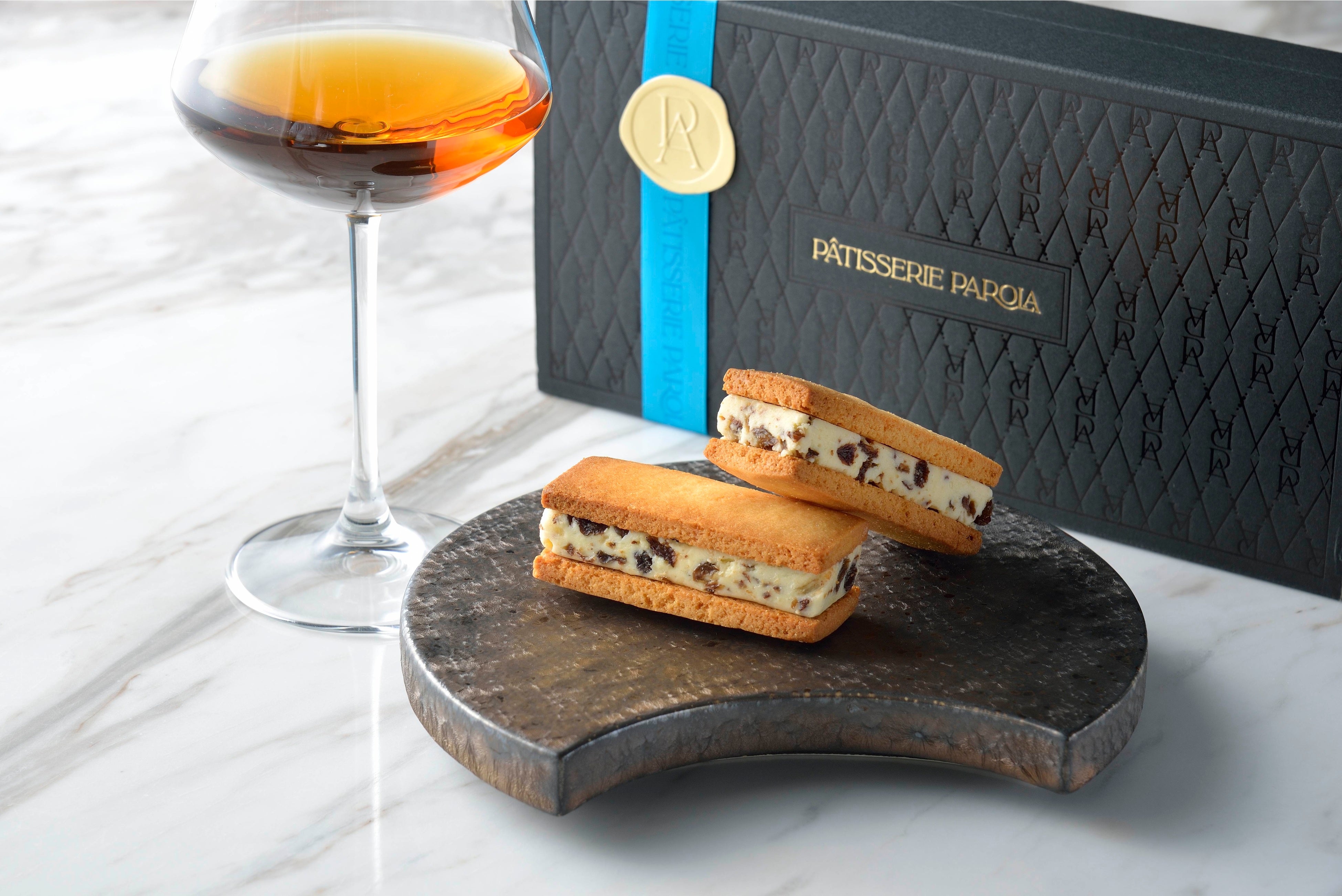 レーズンを贅沢に使用。ラムとブランデーをしっかりきかせた大人のレーズンバターサンドです。