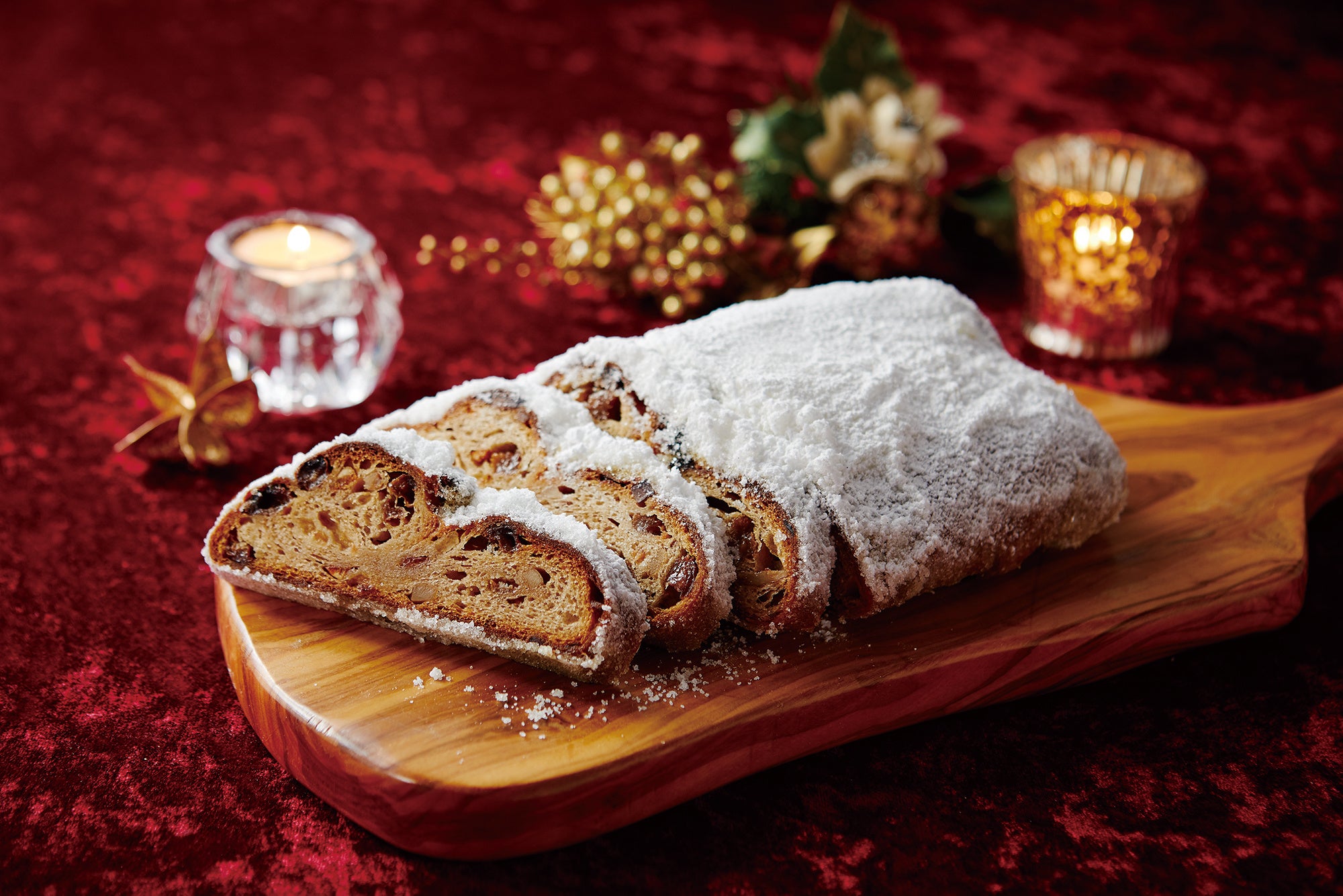 京王プラザホテル初代シェフ直伝のレシピで作る、ドイツ伝統のクリスマス菓子シュトーレン。バター、ドライフルーツ、スパイスをふんだんに使い、マジパンを練りこんでしっとりと焼き上げています。
