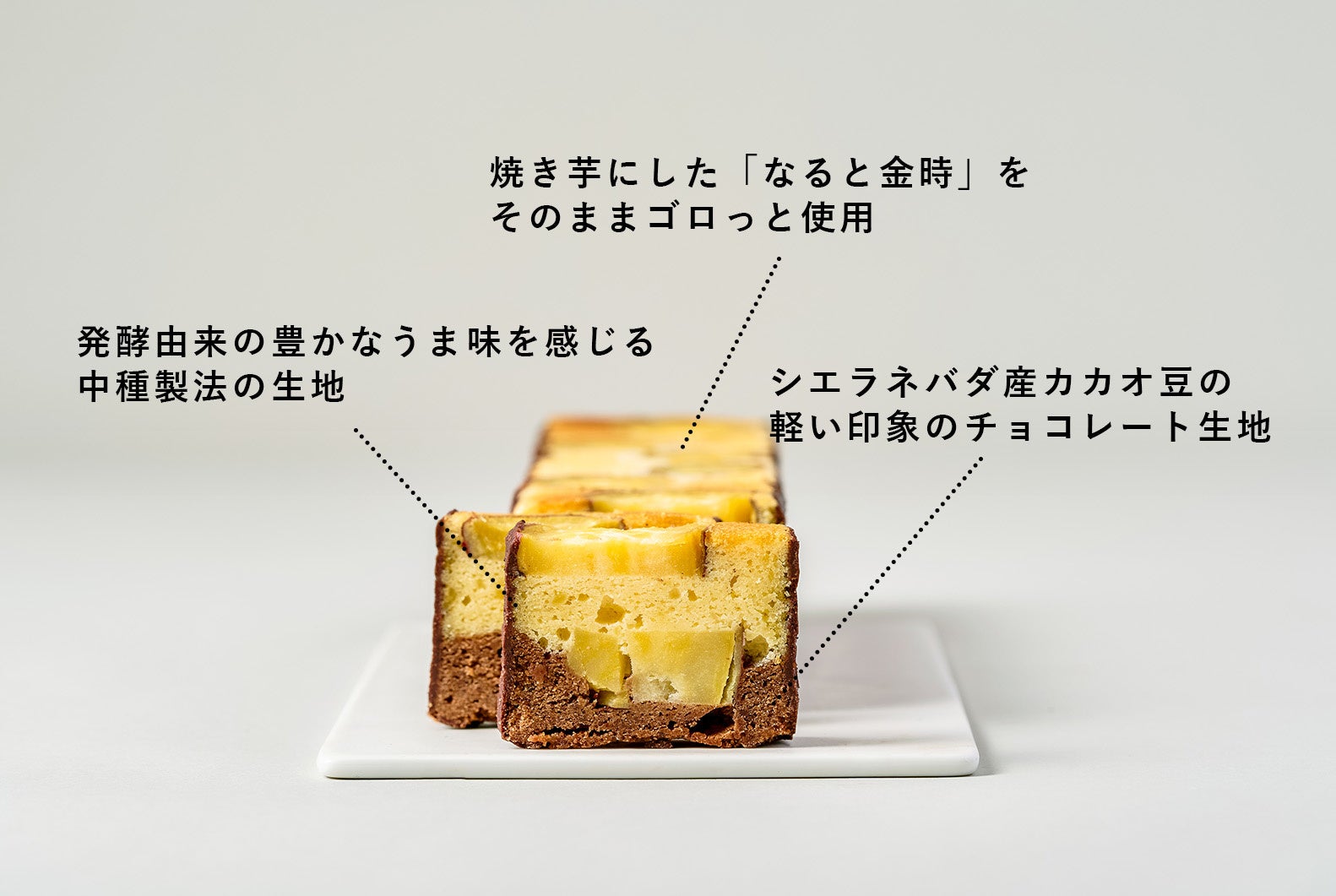 チョコレート生地は、果実味が特徴のコロンビア・シエラネバダ産のカカオ豆を使用。芋の上品な味わいに寄り添うようチョコレートの味わいを調整し、レーズンのような凝縮した甘味のある果実感をなると金時の甘味に合わせることで、心地よいチョコレートの渋味が焼き芋の皮の渋味に寄り添うよう仕上げました。