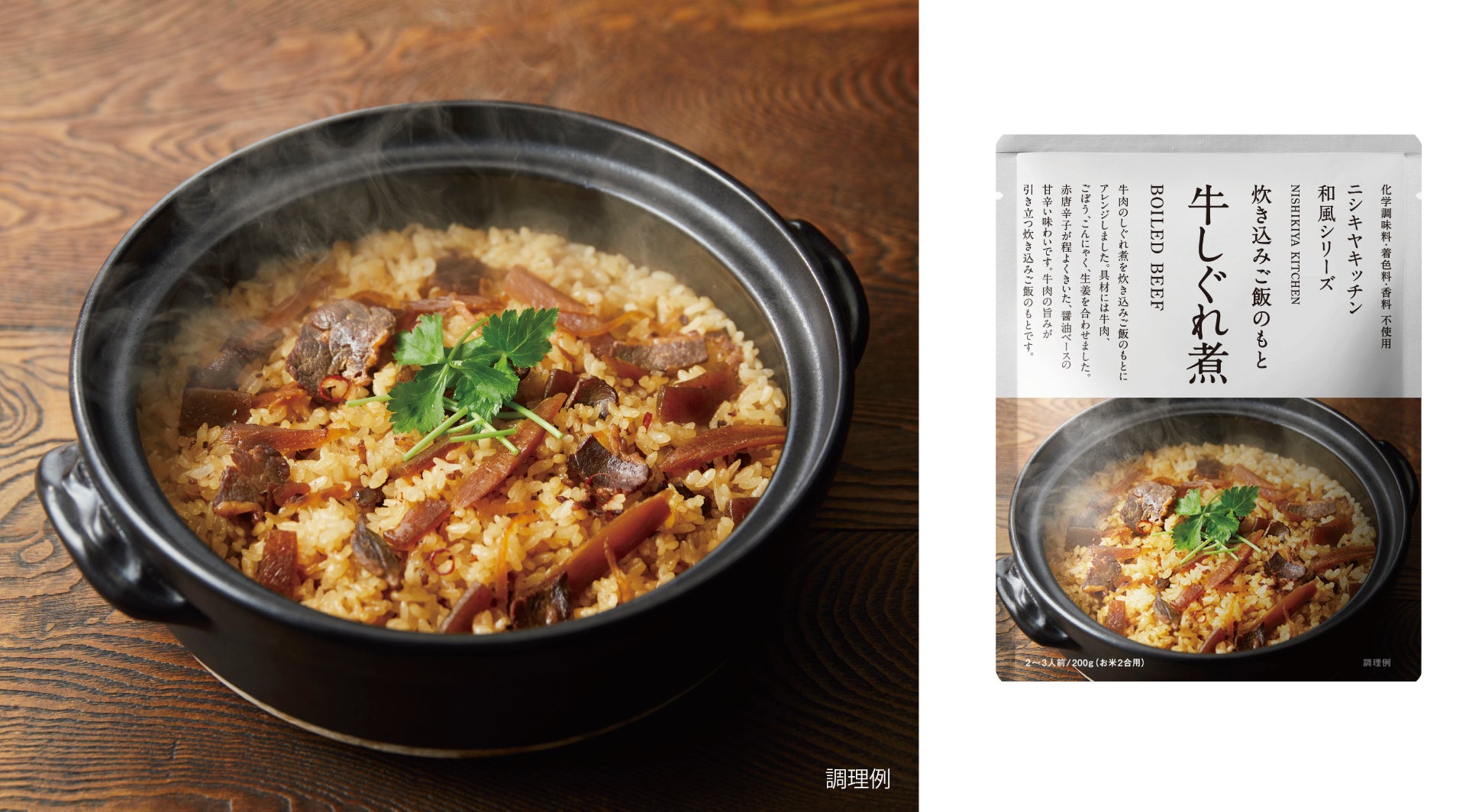 - ご飯がすすむ味わい「牛しぐれ煮ご飯のもと」「豚の角煮ご飯のもと」