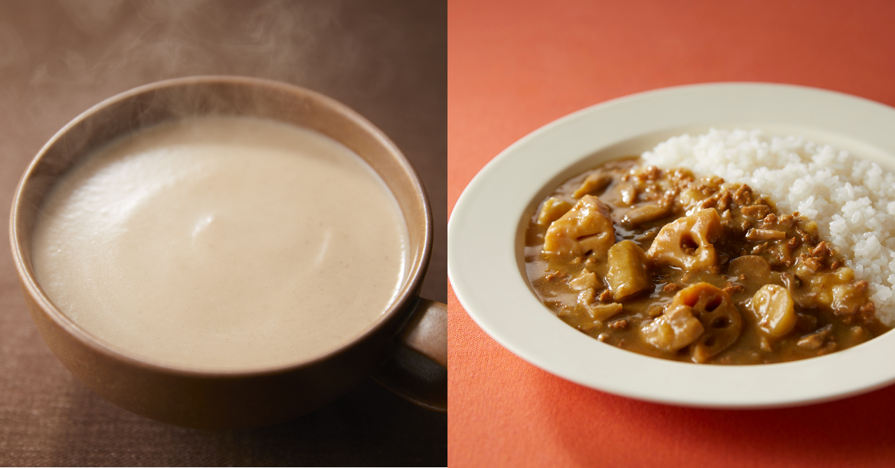秋の味覚、れんこん、ごぼう、エリンギを加えた具だくさんのキーマカレーに、シチリア産レモンがほんのり香ります。