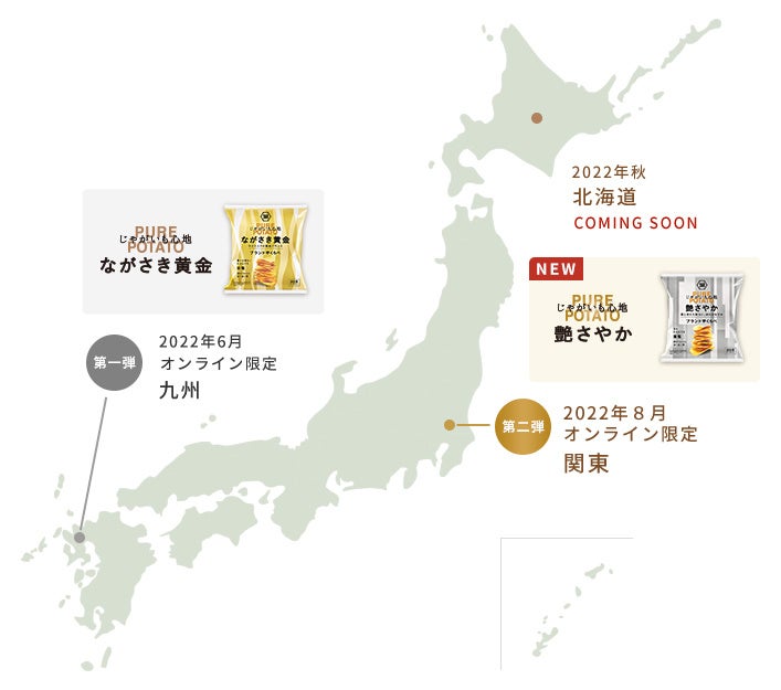 “じゃがいも前線”に合わせて、九州産の“ながさき黄金”を使用した第1弾、関東産の“さやか”を使用した第2弾をオンラインショップ限定で発売し、今後は北海道産を使用した全国発売の第3弾を予定しており、旬のブランド芋をより一層楽しんでいただけるような企画を考えております。