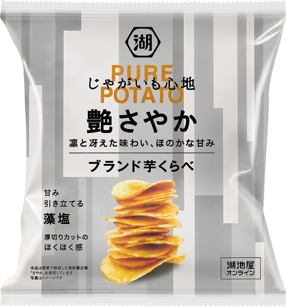 “さやか”は、その名の通り爽やかでキレのある味わいが特徴で、しっとりとなめらかな舌触りが心地よい、夏にぴったりなブランドじゃがいもです。また“さやか”は、そのなめらかな舌触りからポテトサラダなどに使われる品種であり、油で揚げるには加工のハードルが高く、ポテトチップスには向いていないと言われてきましたが、湖池屋が培ってきた技術をつぎ込み、このブランド芋のキレのある味わいと甘みをポテトチップスとして実現しました。