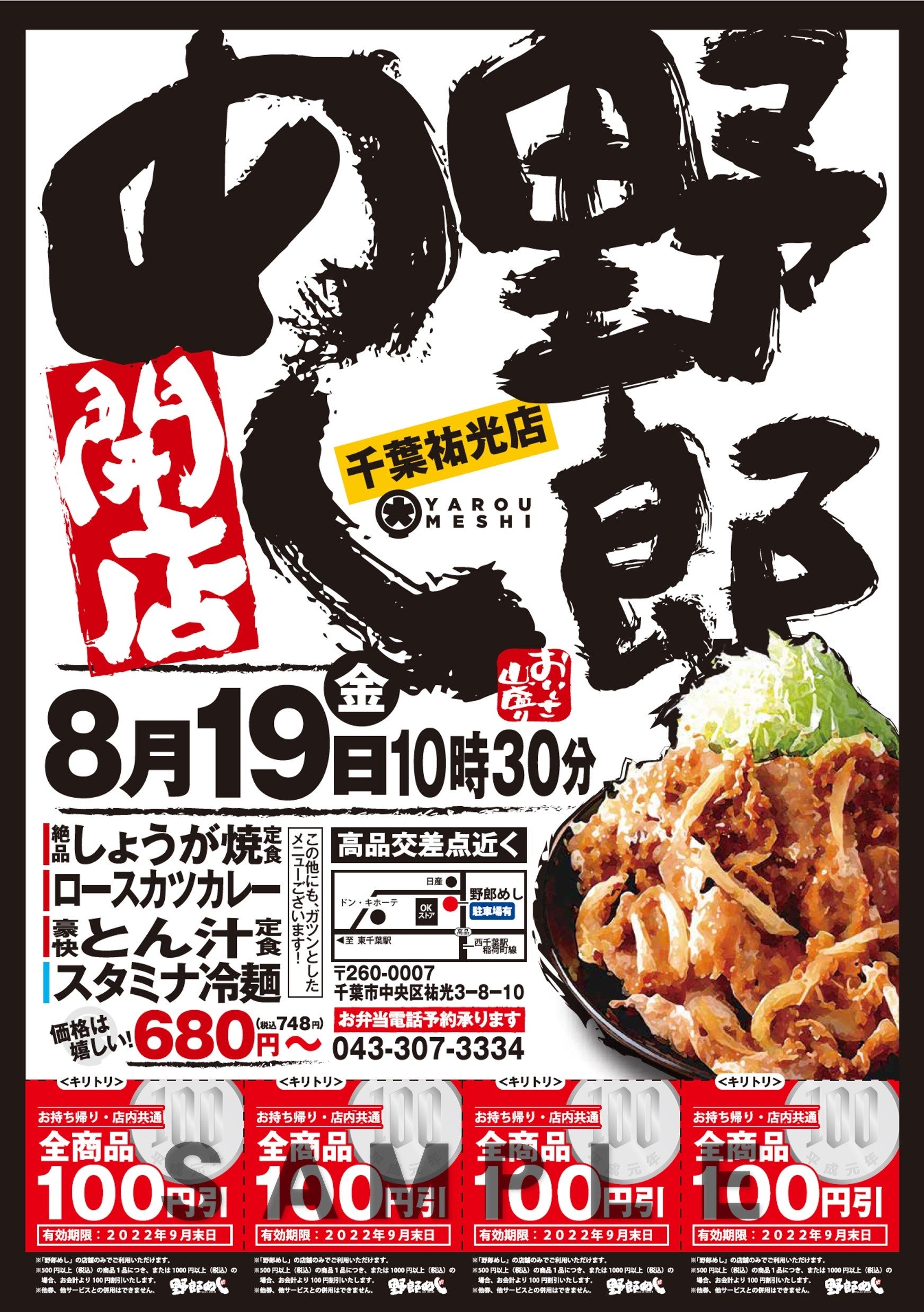 「築地銀だこ」https://www.gindaco.com/ を展開する株式会社ホットランド(本社:東京都中央区、代表取締役社長:佐瀬守男)の連結子会社で、「日本橋からり」http://www.nihonbashi-karari.com/ などを展開する株式会社ホットランドネクステージ(本社:東京都中央区、代表取締役社⻑:太田直希)は、2022年8月19日(金)千葉県 “初” となる『野郎めし 千葉祐光店』をオープンいたします。