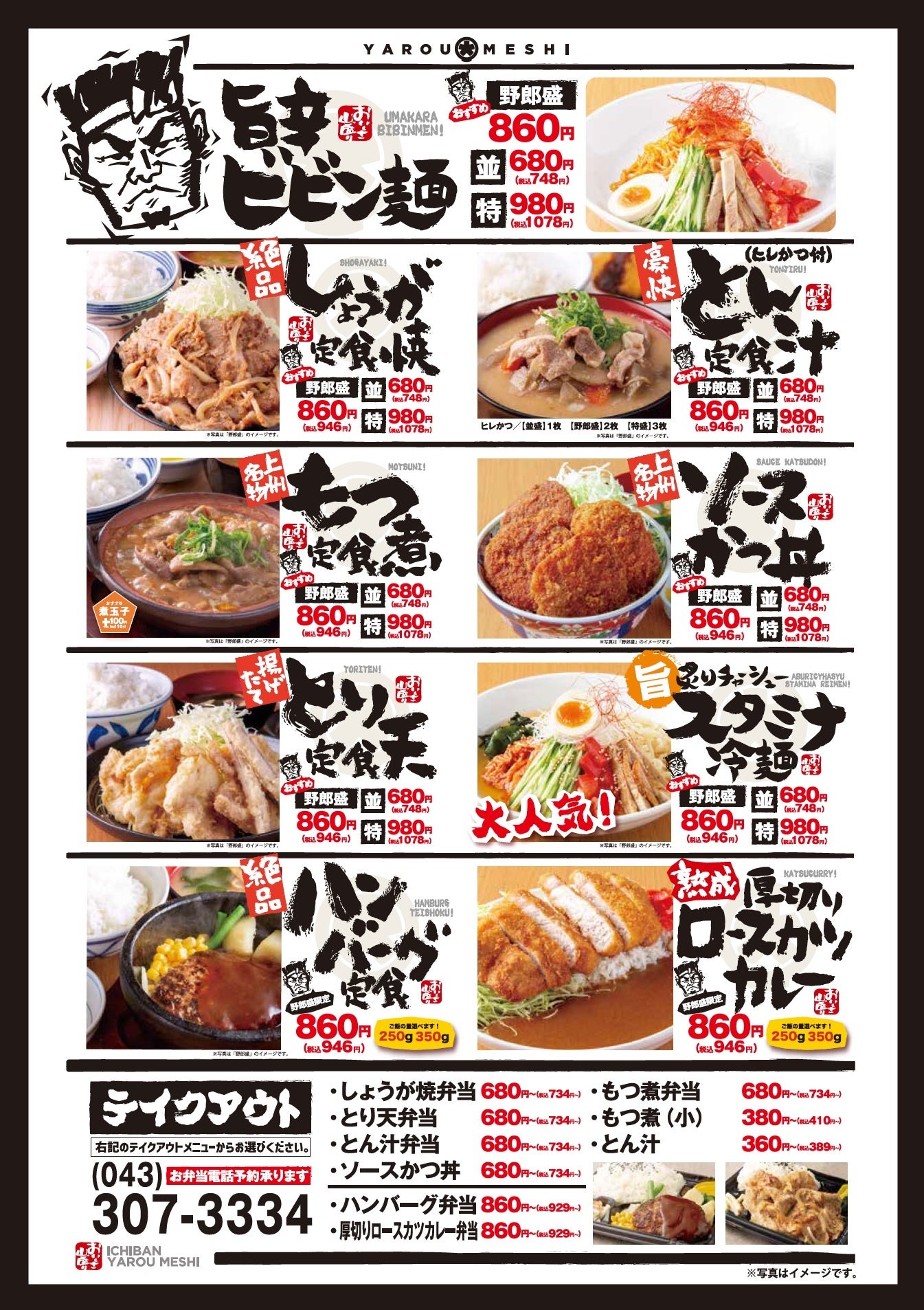 ※テイクアウト(弁当)の場合はワンサイズ、税率・価格が異なります ※写真は 「野郎盛」 のイメージです