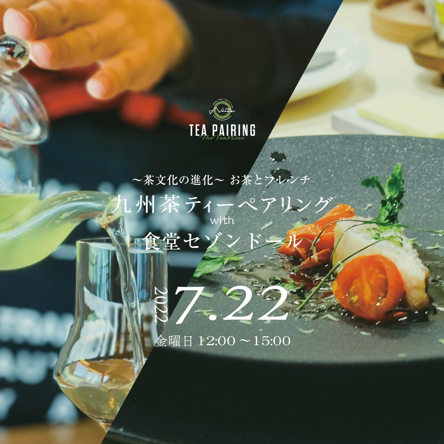 お茶結びプロジェクトが提供する【九州茶】と食堂セゾンドールが作り上げる【九州の食材を使用したランチコース】のティーペアリングイベントの第2回目が福岡市南区高宮にある店舗にて9月16日(金)限定開催されます。