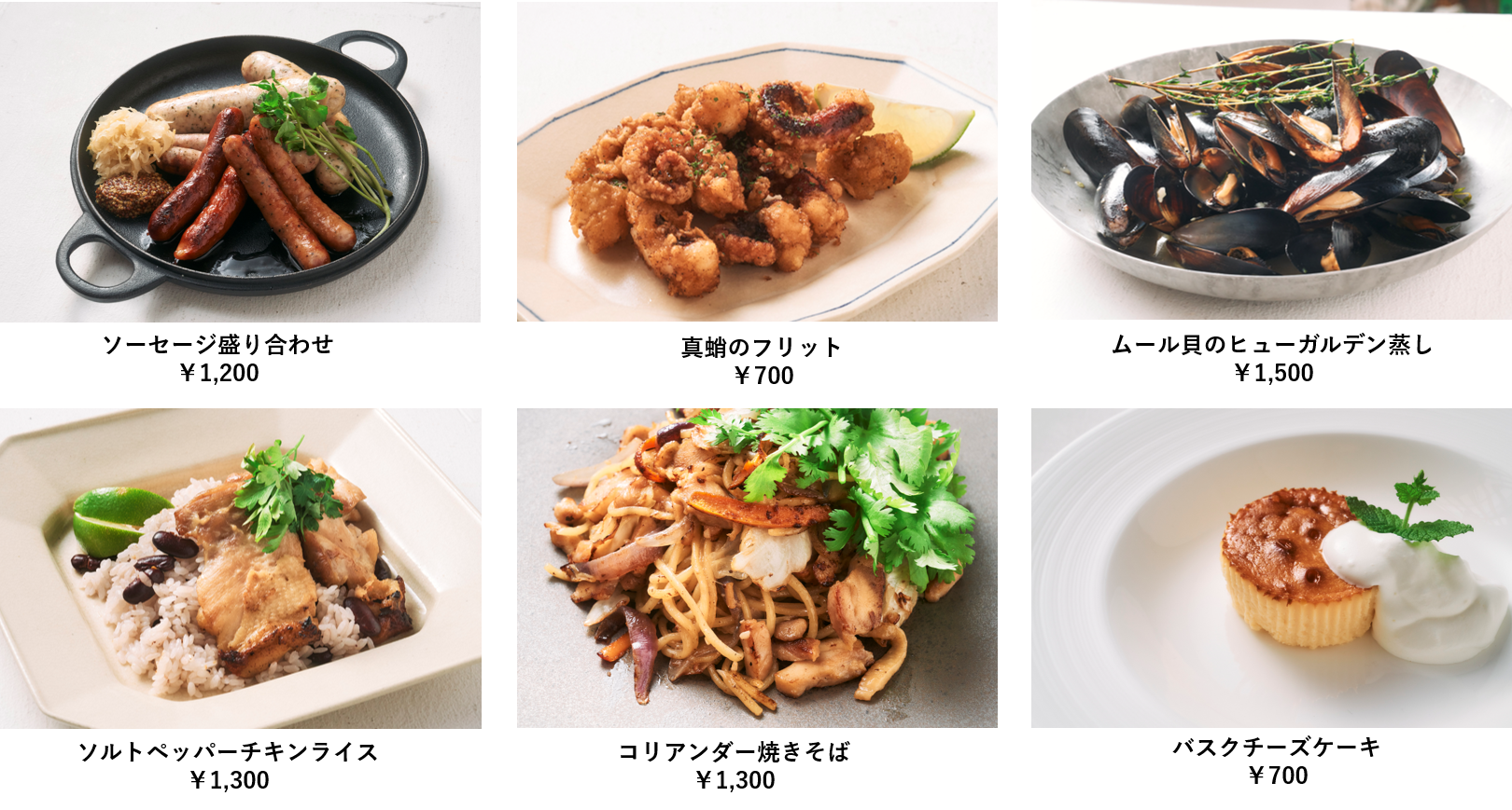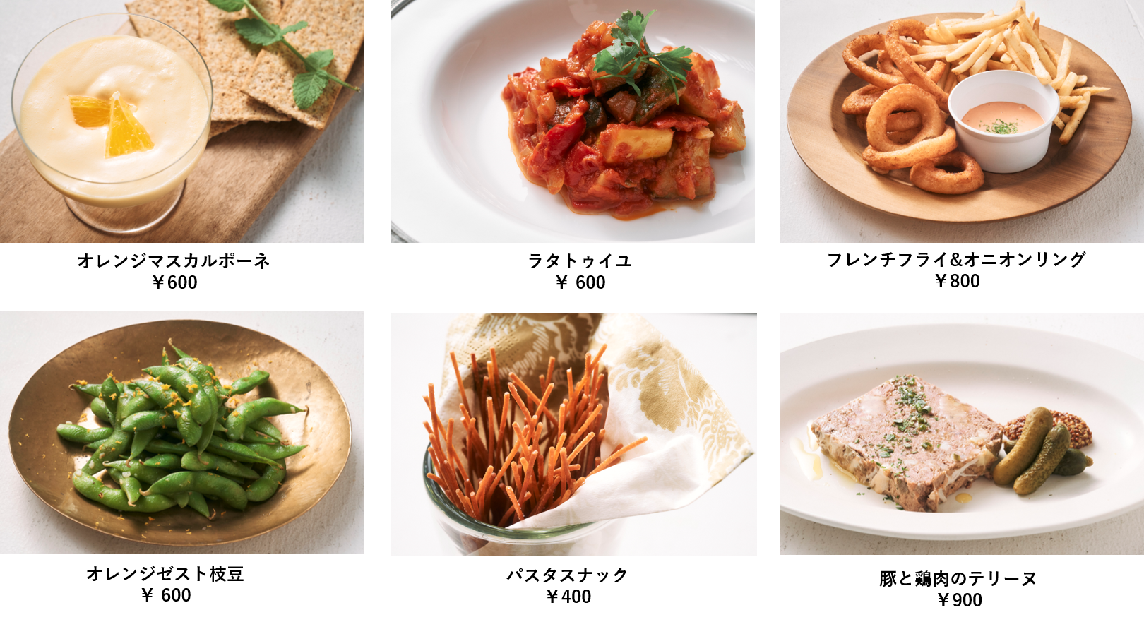 ※平日12:00〜17:00の時間帯はヒューガルデン アペロセット/ヒューガルデンオリジナルポテトチップス/オレンジマスカルポーネ/ラタトゥイユ/オレンジゼスト枝豆/パスタスナック/豚と鶏肉のテリーヌ/バスクチーズケーキのご提供となります。