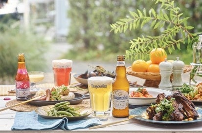 ビア・ガルデンで楽しめるヒューガルデンの生ビールは、オレンジピールとコリアンダーシードの組み合わせが生み出す自然な苦みと、特有の清涼感、香り華やぐフルーティな味わいが特徴です。その爽やかな味わいは、どんなフードとも相性が良く、楽しいひと時のはじまりを特別にする、この季節にぴったりのホワイトビールです。