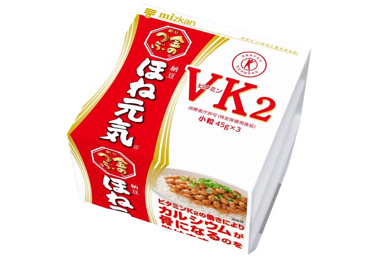 骨といえばカルシウムですが、骨の形成にはカルシウムだけではなくビタミンK2(VK2)も重要です。本商品はそんなVK2が豊富に含まれている特定保健用食品の納豆で、発売後20年以上のロングセラー商品です。今回、ほね元気の機能の秘密である「VK2」を知っていただきたく、パッケージに大きくデザインしました。毎日の健康維持に「VK2」が目印の「ほね元気」習慣始めてみませんか?