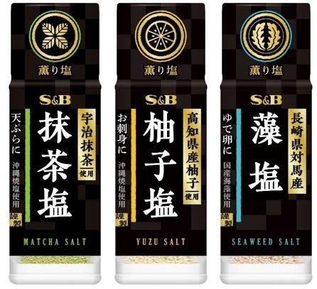 エスビー食品株式会社は、国産素材と伝統的な製法で作られた塩を組み合わせた「薫り塩」シリーズとして「抹茶塩」「柚子塩」「藻塩」の3品を新発売します。